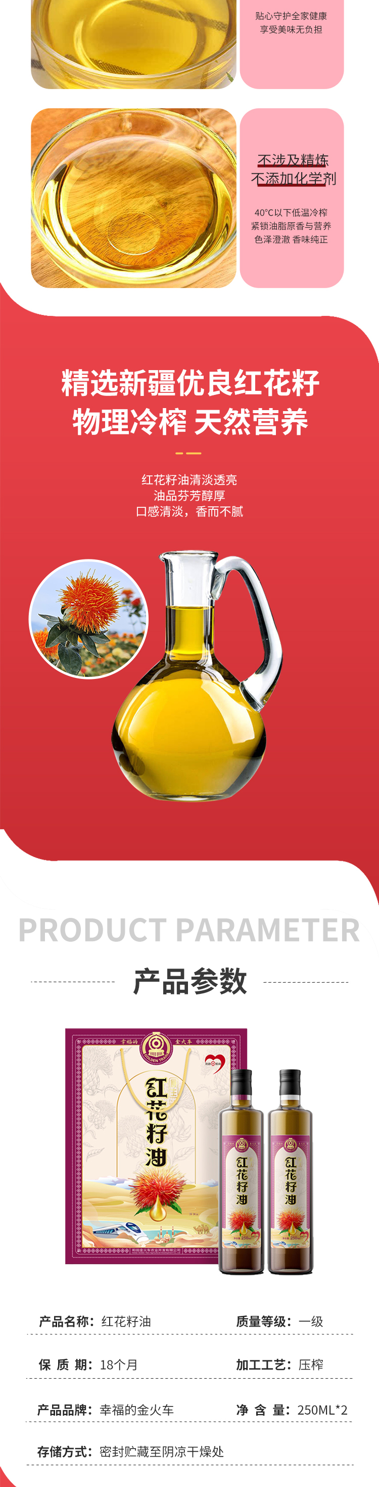 【新疆和田特产馆】幸福的金火车 红花籽油礼盒 250ml*2/提