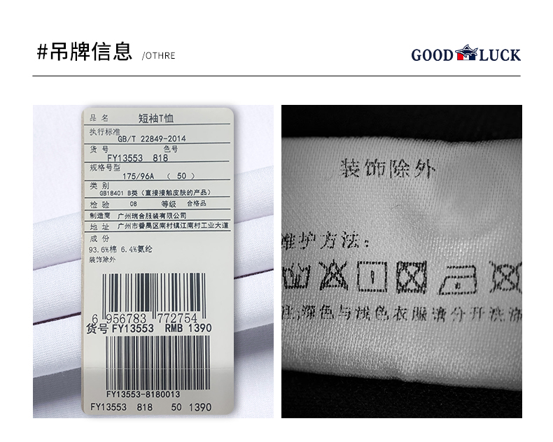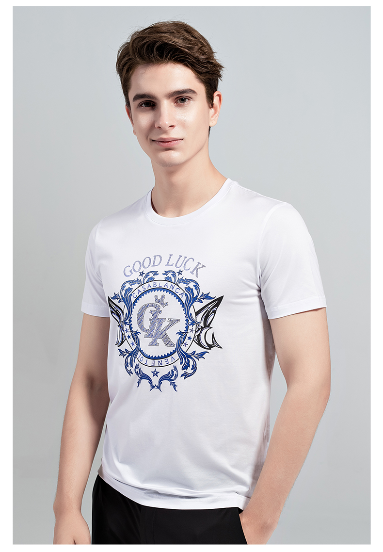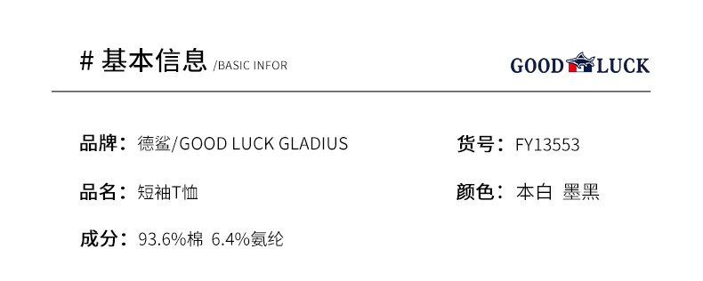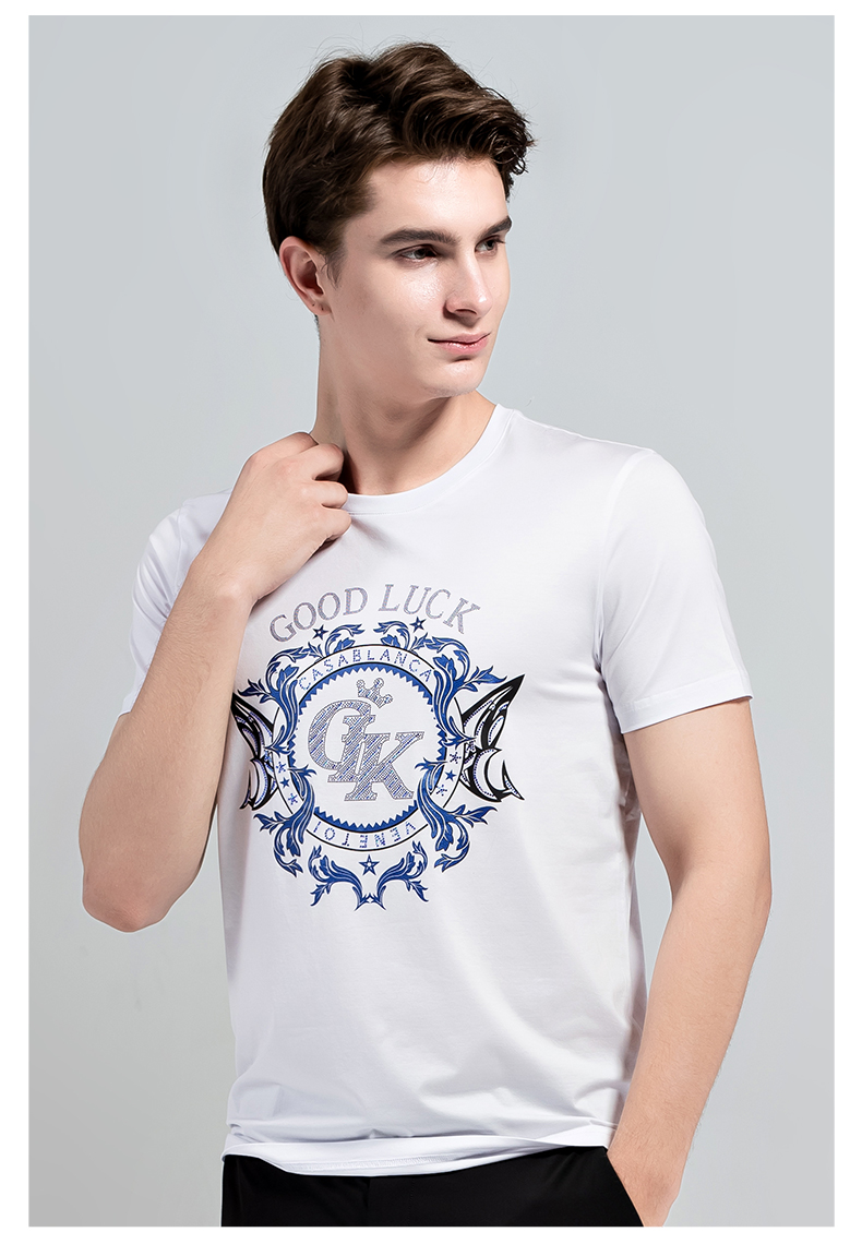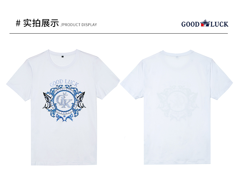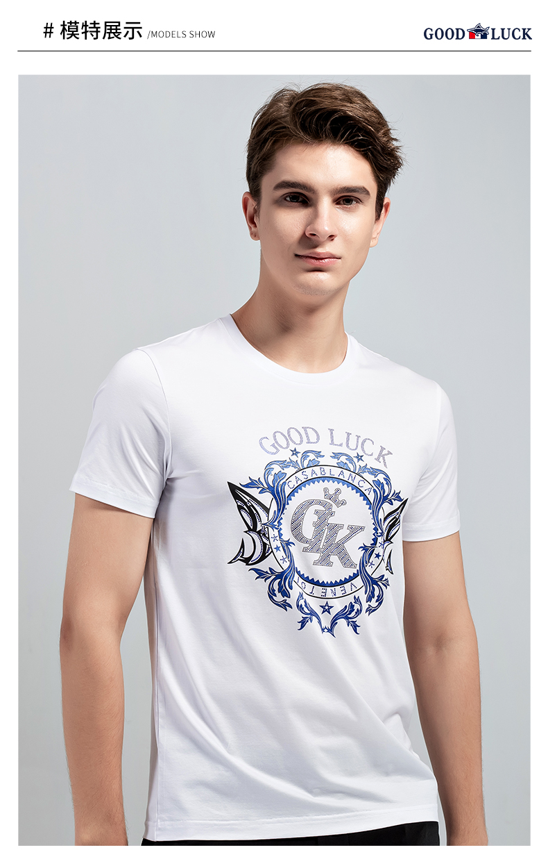 GOOD LUCK/德鲨质感精梳棉弹力舒适精致图案圆领短袖T恤FY13553