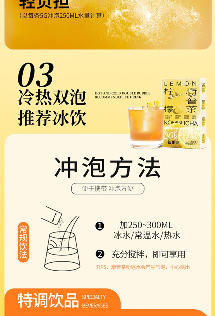 【分仓直发包邮】一包生活柠檬康普茶5g*7条/盒*2