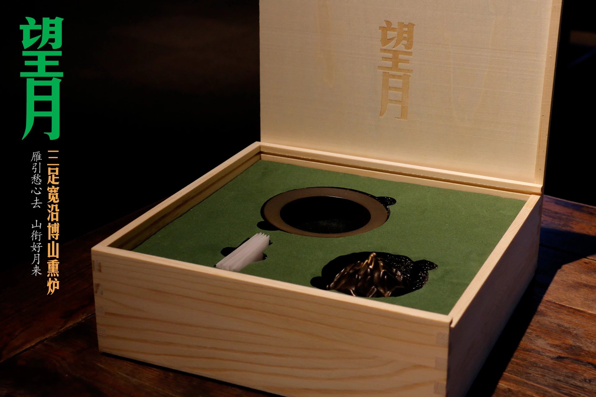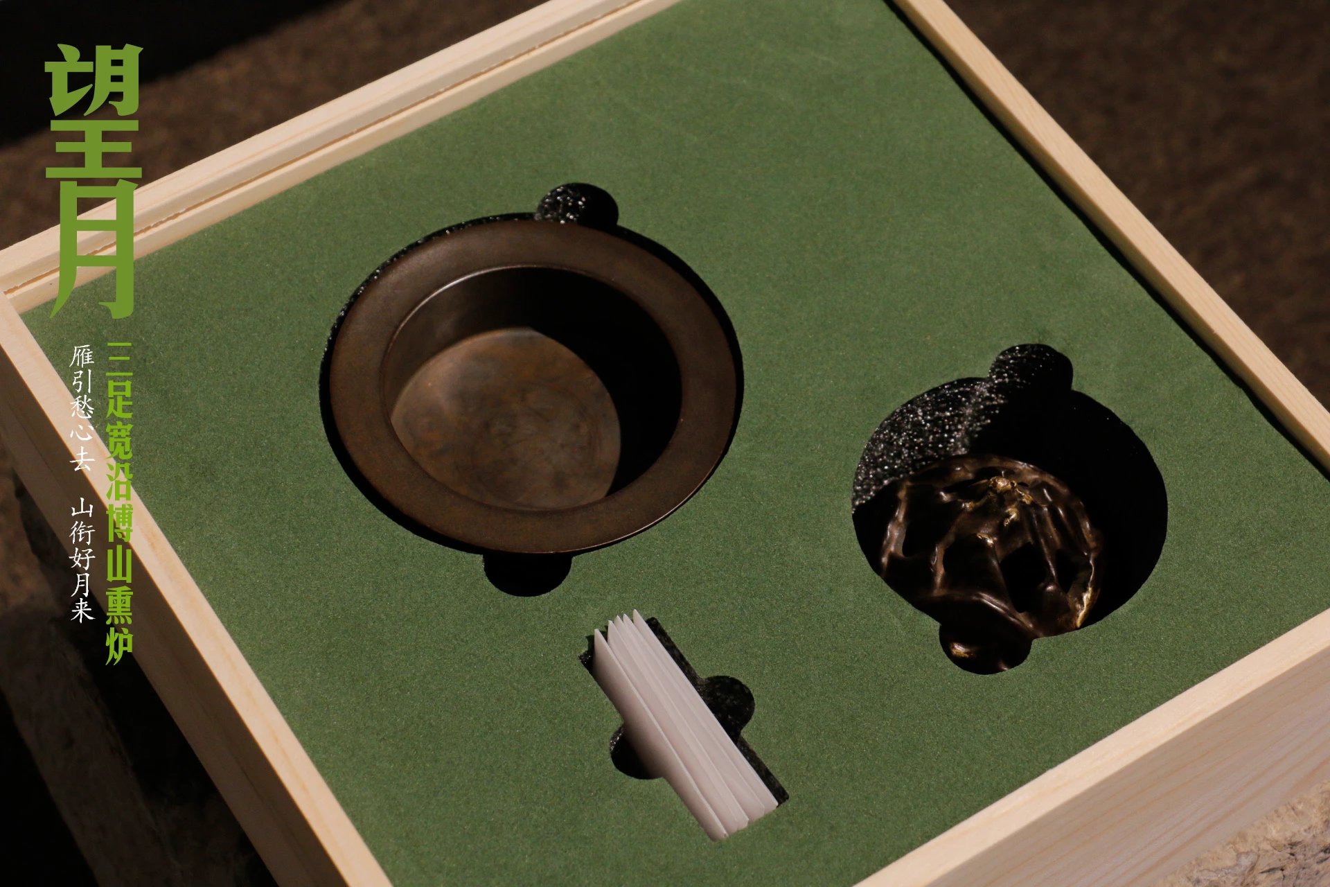 【望月】博山香炉礼盒 材质:铜(香炉) 规格:高8.5cm,宽9.5cm 用法:盘香、篆香 盘香:越南芽庄盘香1.5H/5盘 运用场景:文房、书桌、案头、茶席、香席等 特点:小巧灵动,分量感足,古风新制 包装盒大小:25x25x8.5cm 备注:该商品为批量制作,支持单品全国代理,详情联系店长。