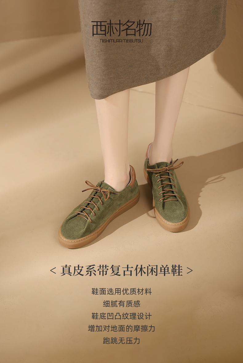 西村名物真皮系带平底舒适圆头复古休闲鞋板鞋2023年秋季新款X23CM33821