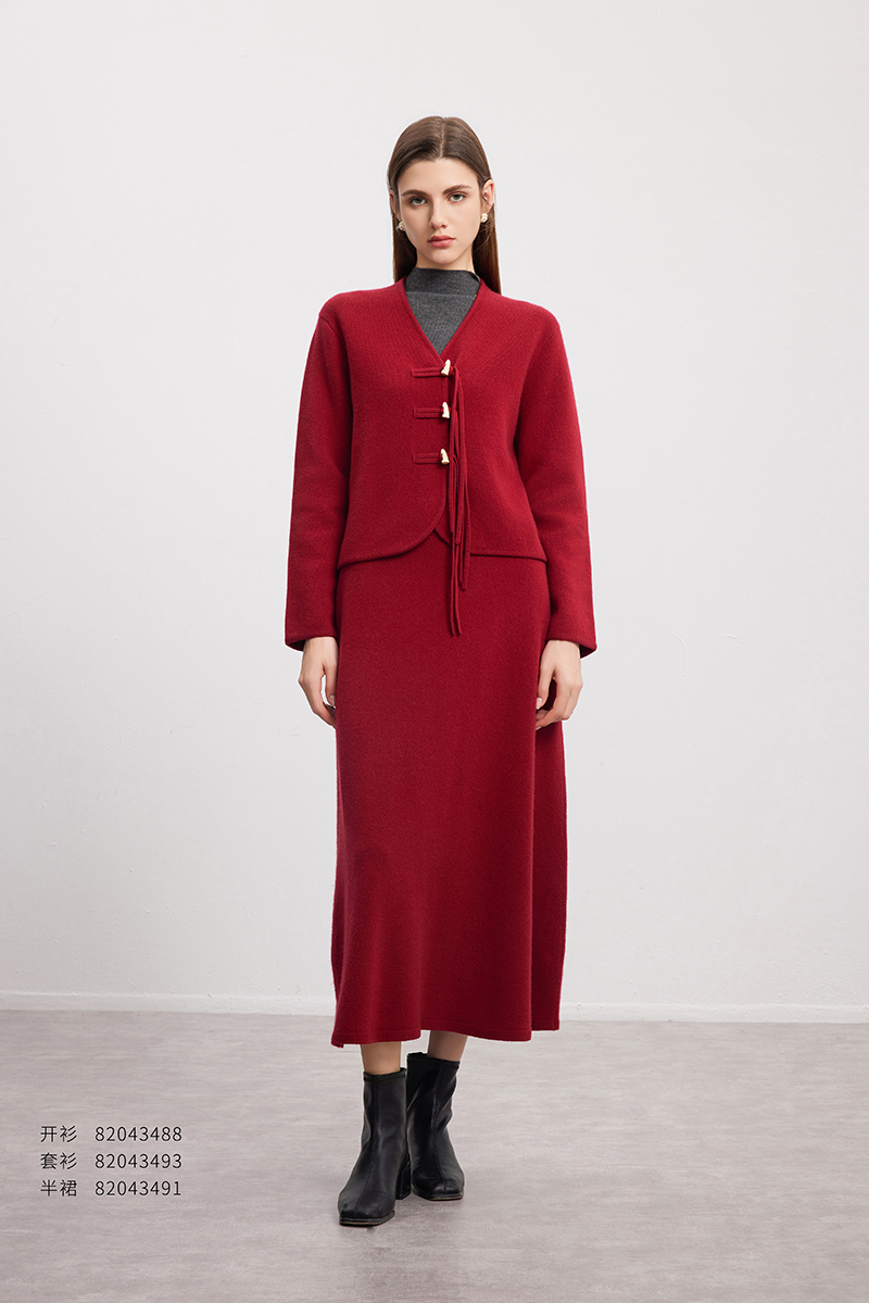 【中长款羊绒半裙】羊绒世家秋冬新品女士100%山羊绒纯色针织半裙