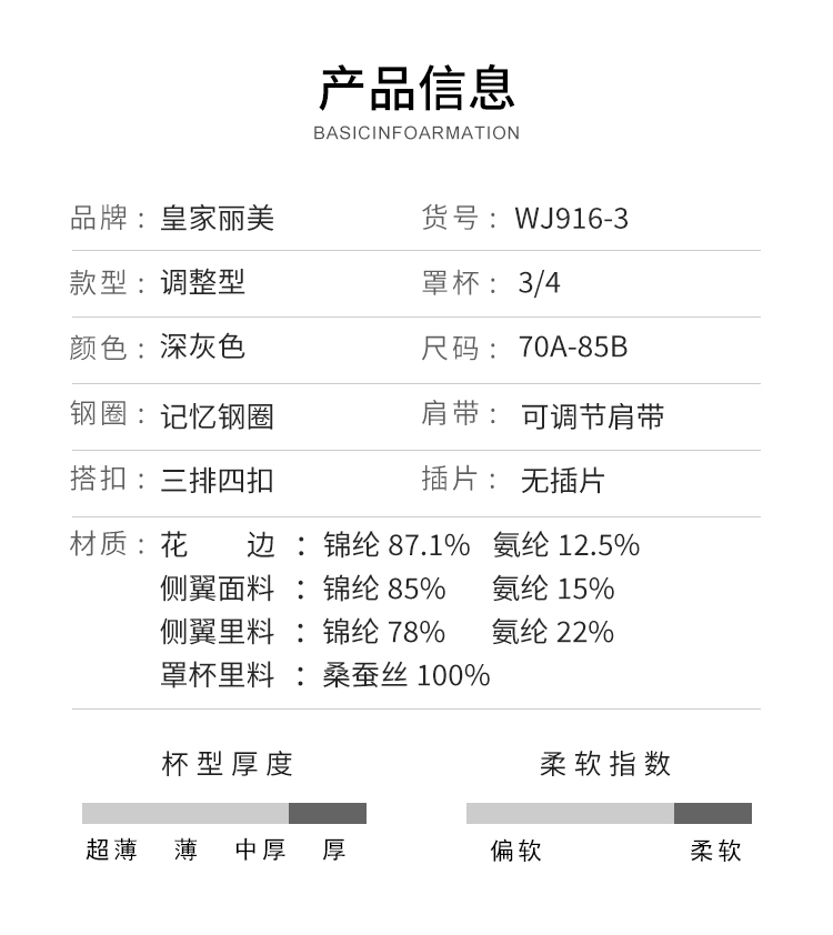 【秒杀品不退不换】WJ916-3皇家丽美收副乳美背内衣记忆钛圈中厚聚拢文胸