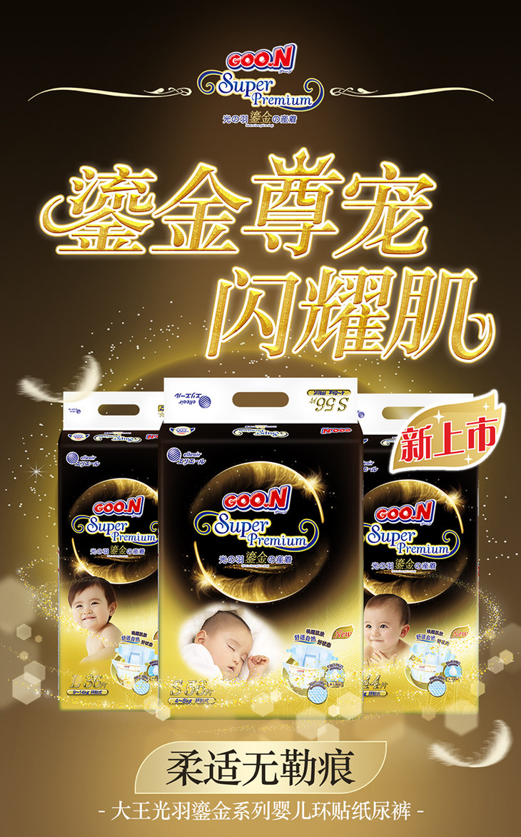 鎏金 纸尿裤 | 箱装| 大王GOO.N 鎏金系列环贴式婴儿纸尿裤S-M -L|尿不湿尿布纸尿片 一箱4包装 (新旧款随机发~)