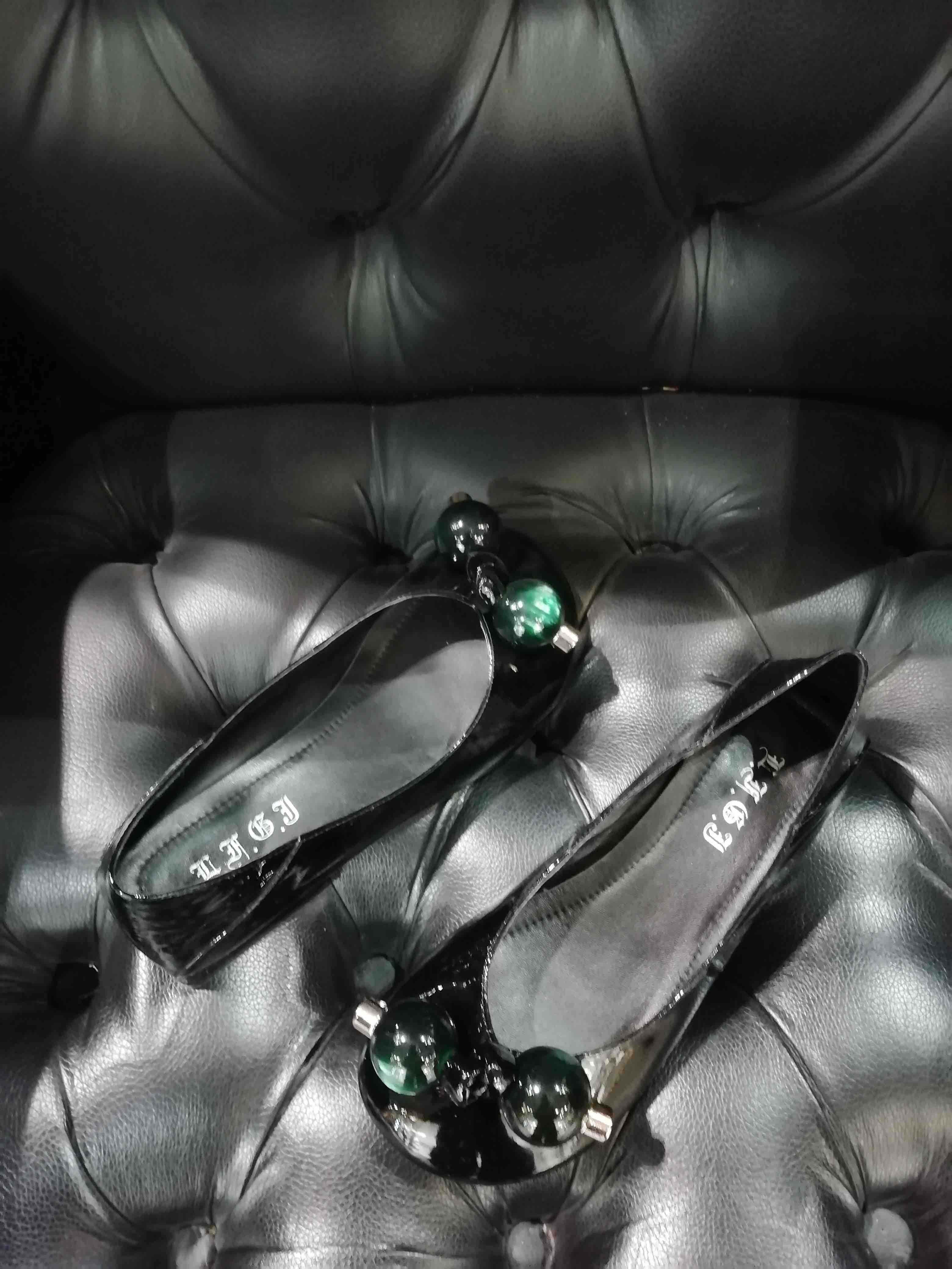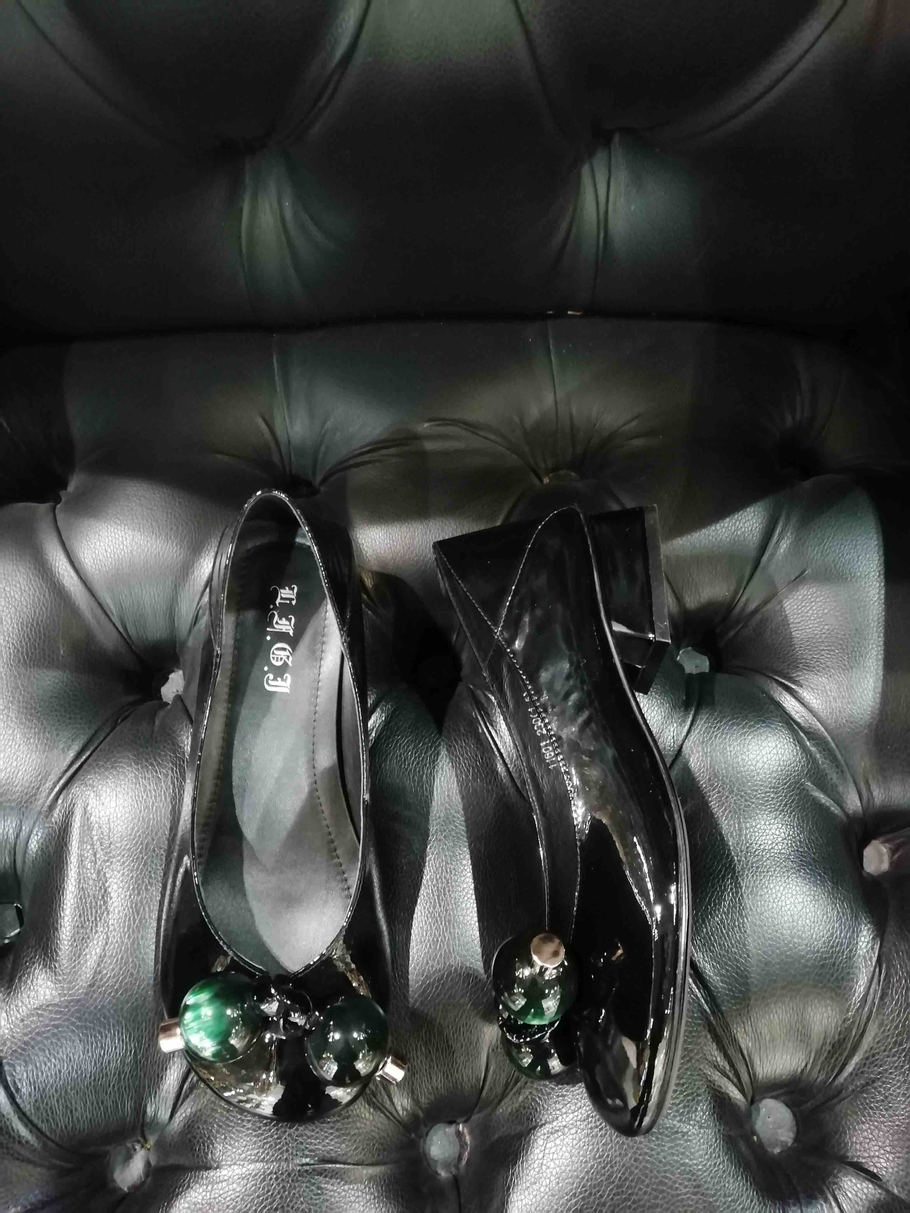 LFGJ 12003 真皮浅口单鞋女低跟粗跟漆皮圆头娃娃鞋豆豆鞋