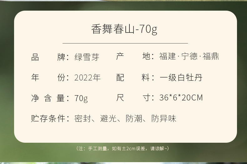 白茶 | 绿雪芽 2022年一级白牡丹正宗高山白茶香舞春山70g
