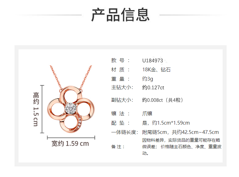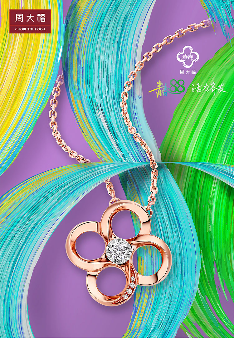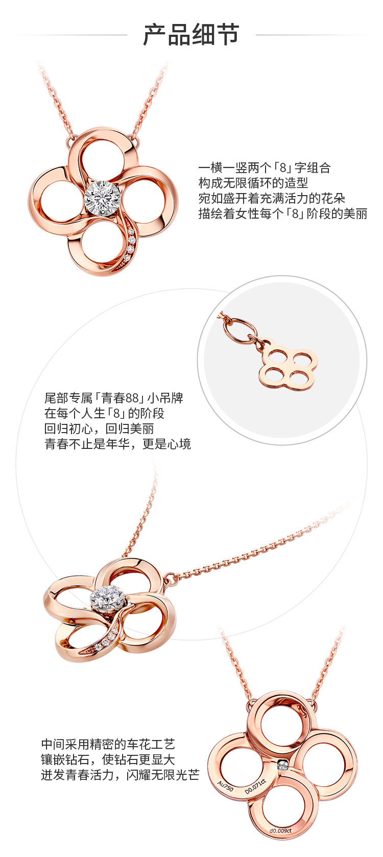 周大福 青春88系列时尚18K金钻石吊坠项链