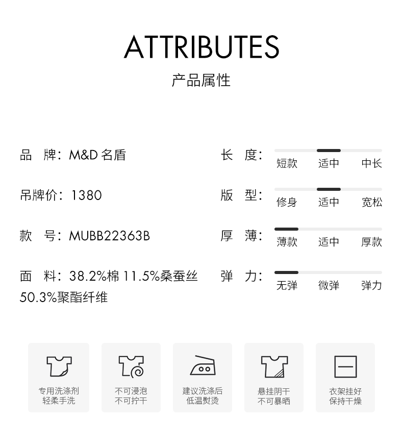 | 销售渠道类型: 商场同款(线上线下都销售) | 材质成分: 新型聚酯纤维50.3% 棉38.2% 桑蚕丝11.5% |