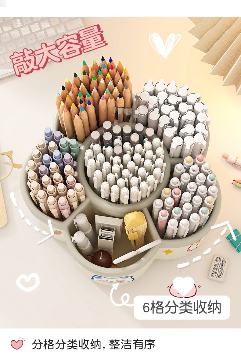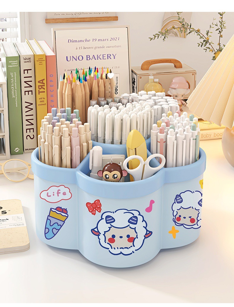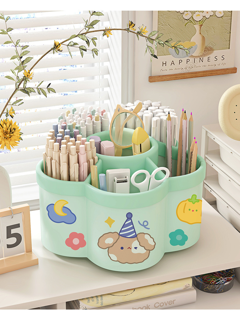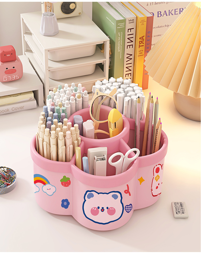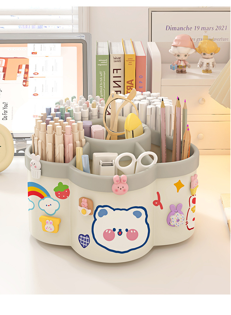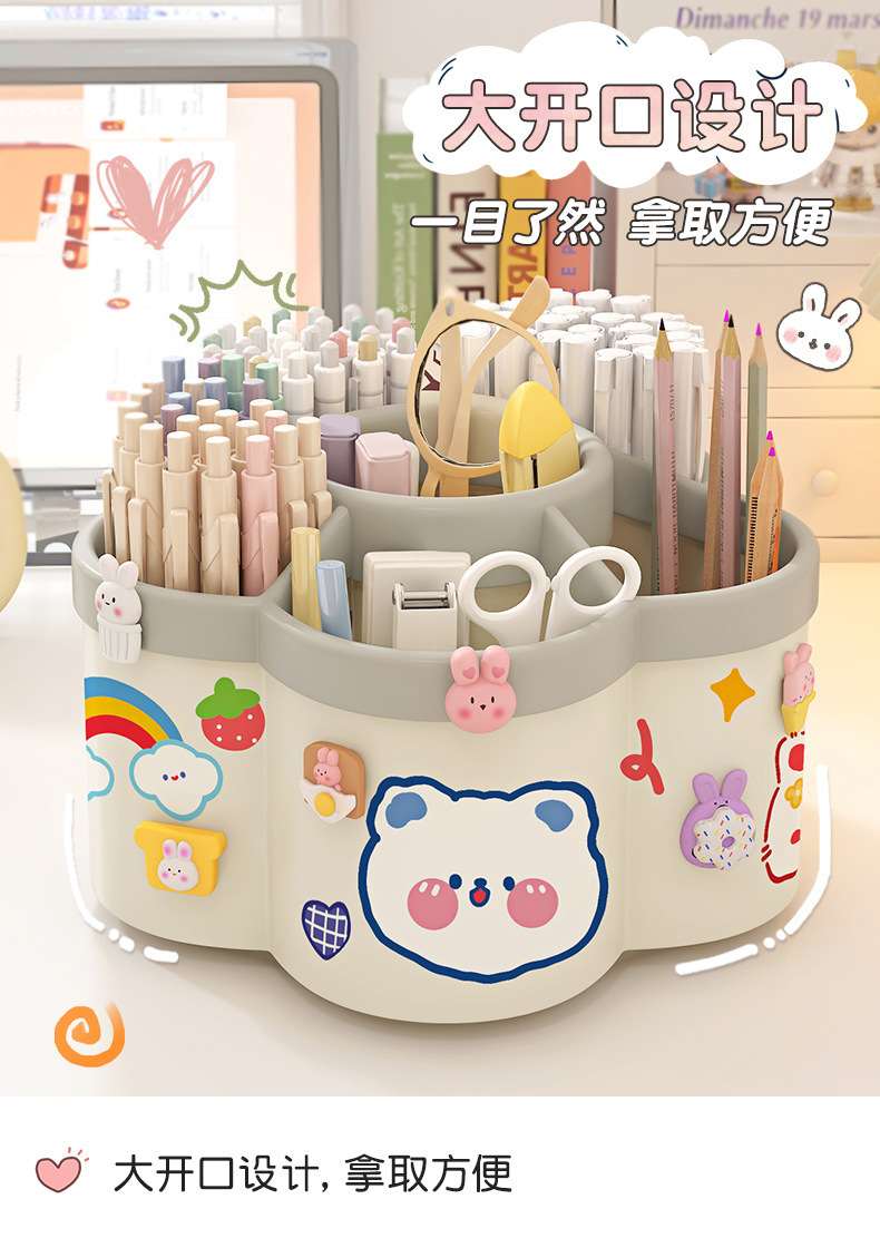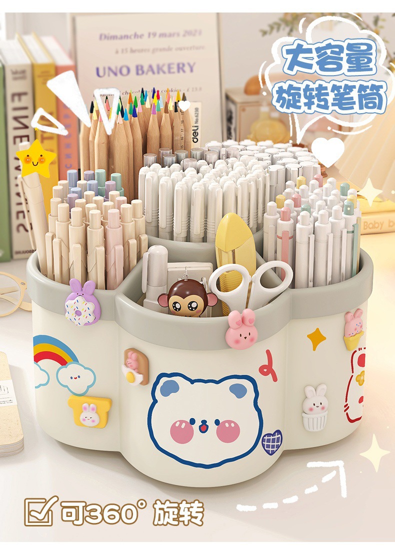 【送贴纸❗️9.9抢大容量旋转笔筒】拿取便携,防水防污,多功能桌面加厚文具收纳盒学生笔筒创意可爱送卡通六一儿童节礼物