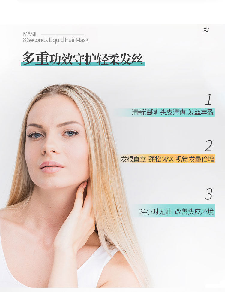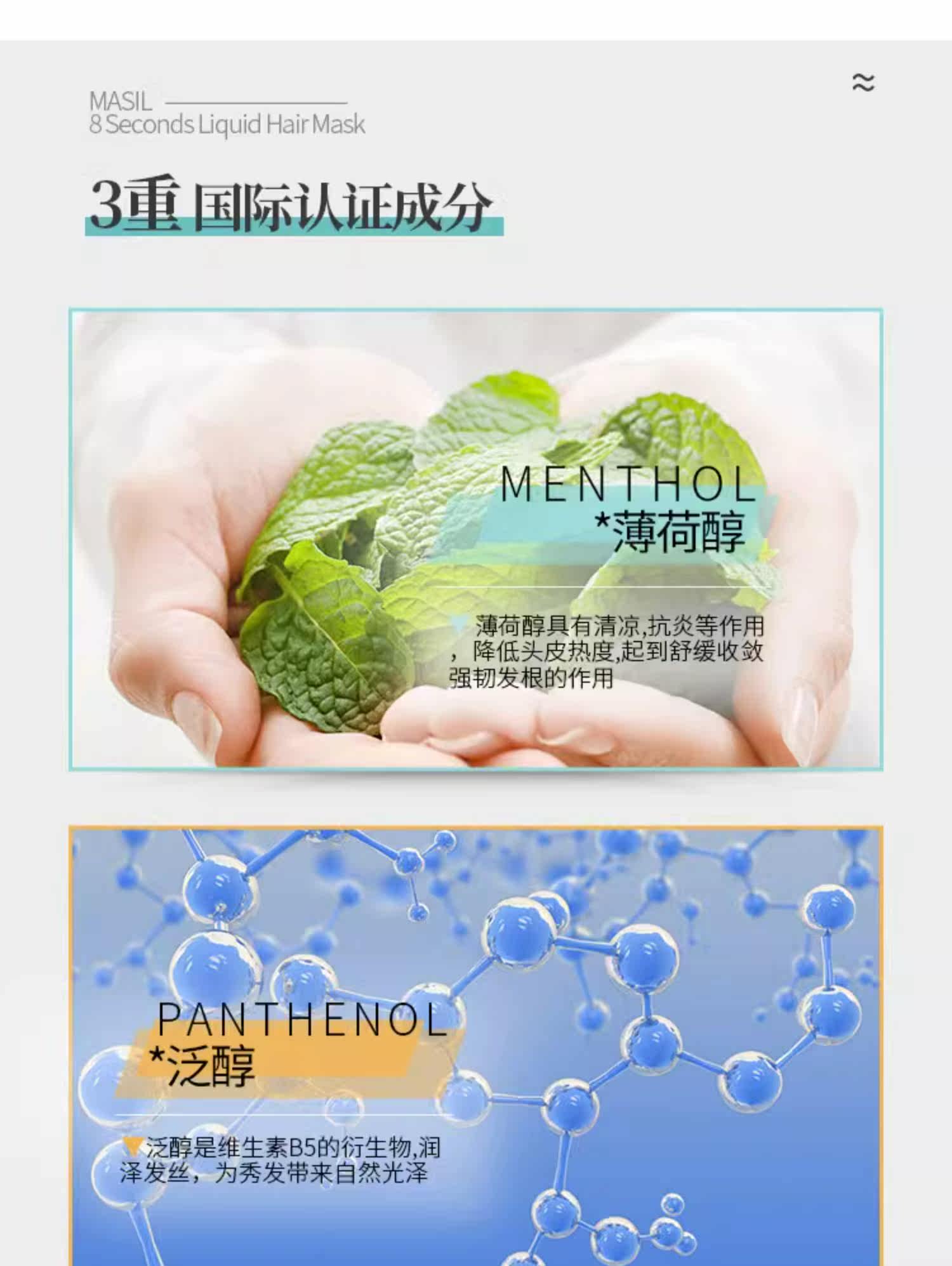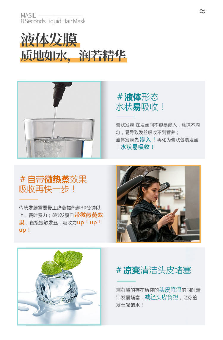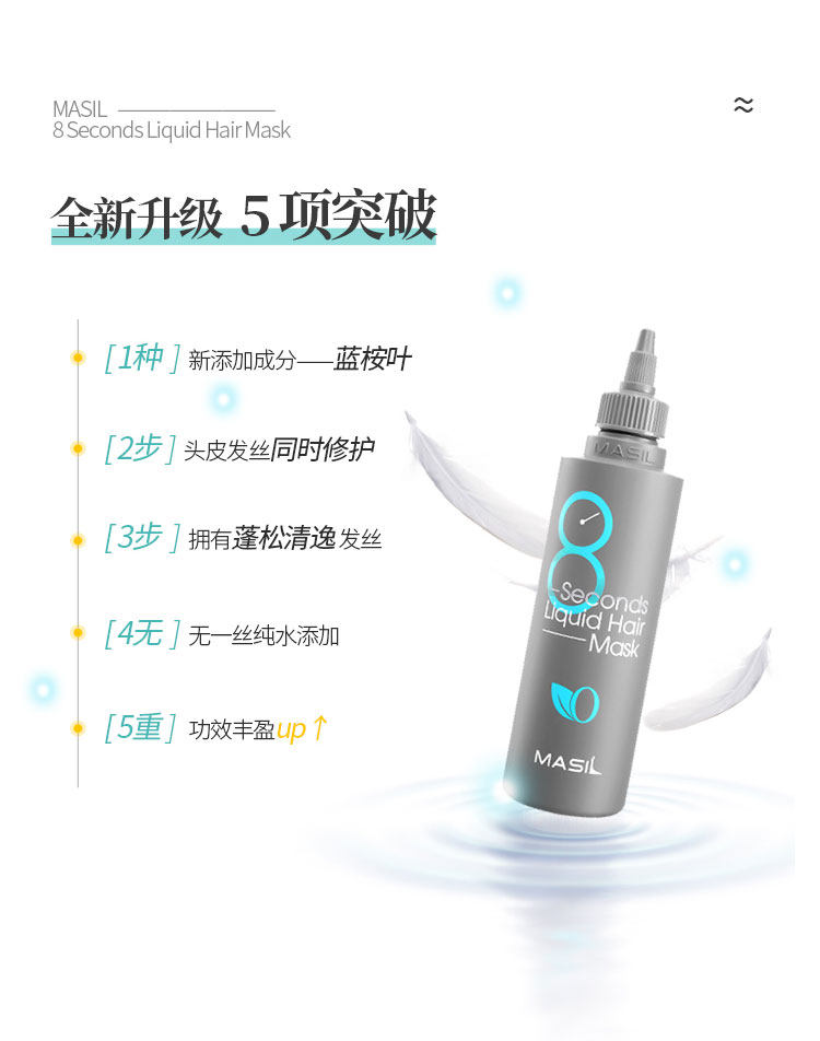 Masil玛丝兰8秒发膜 免蒸修复干枯八秒柔顺头皮护发素液体营养精华200ml