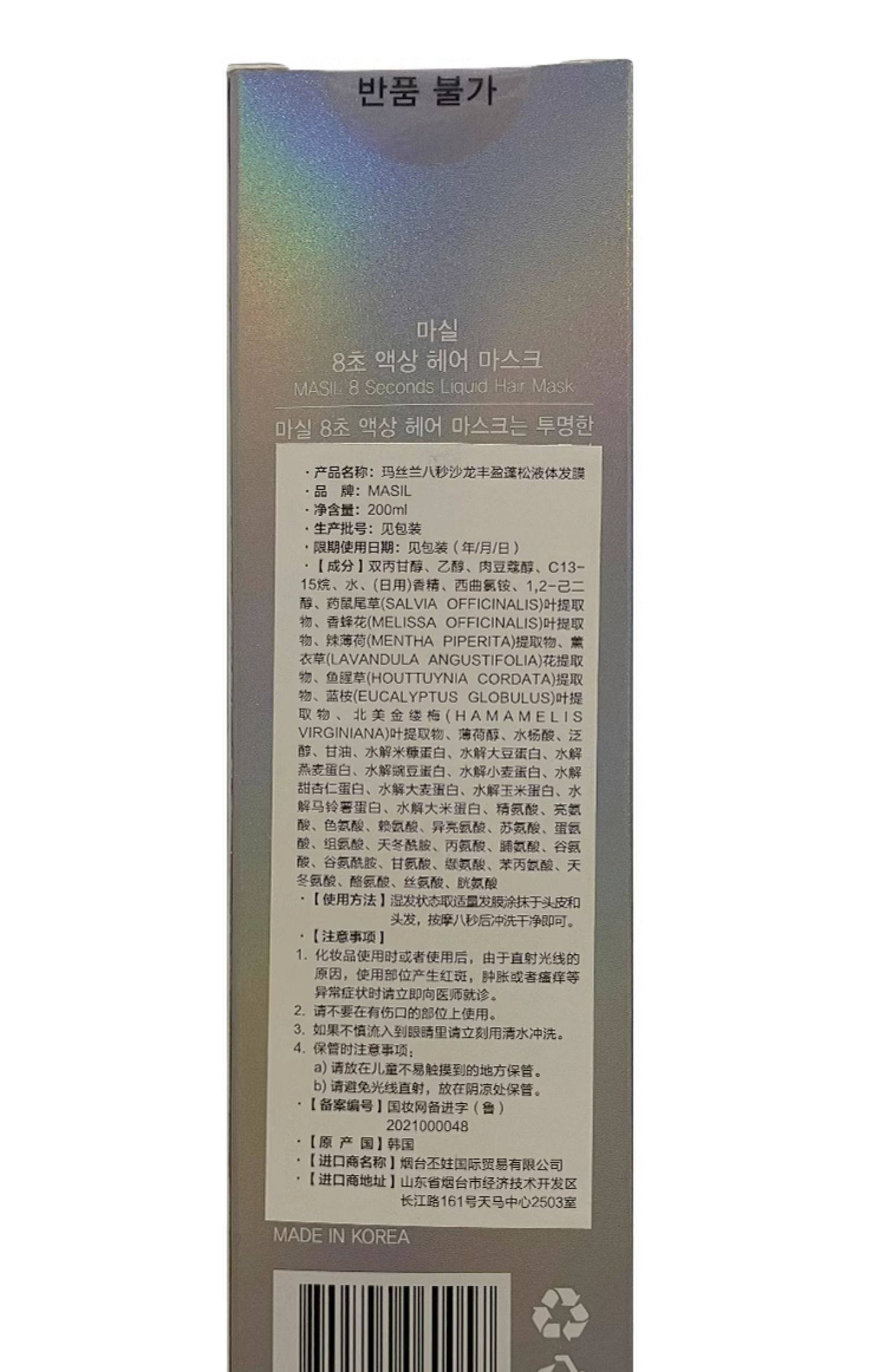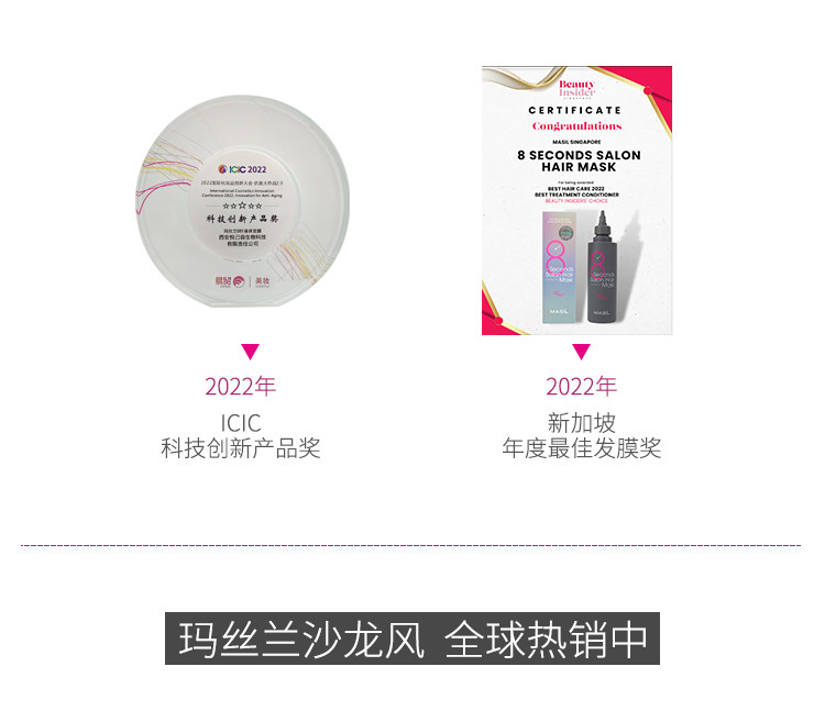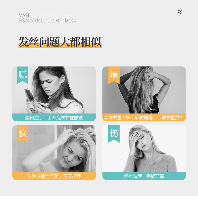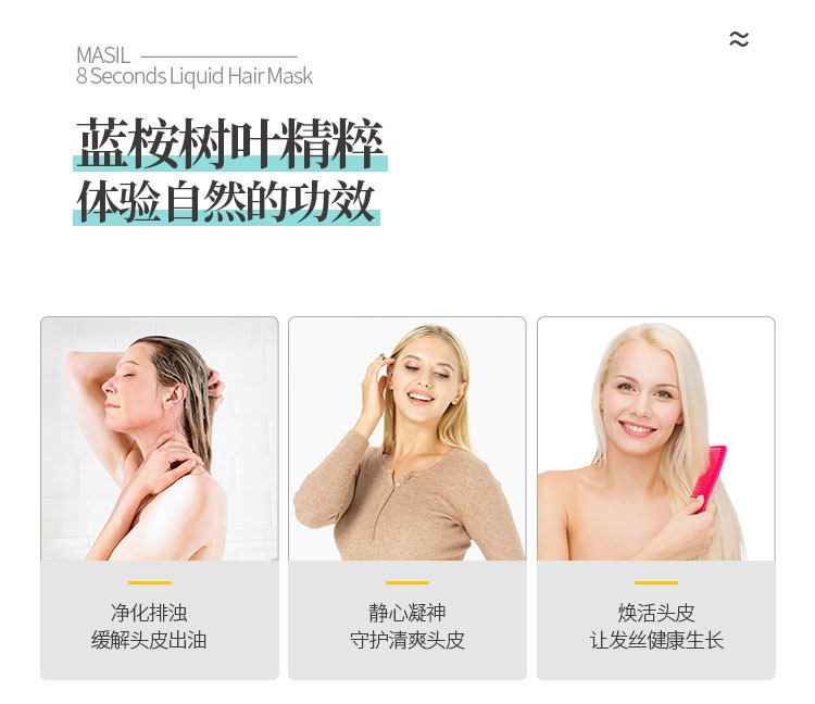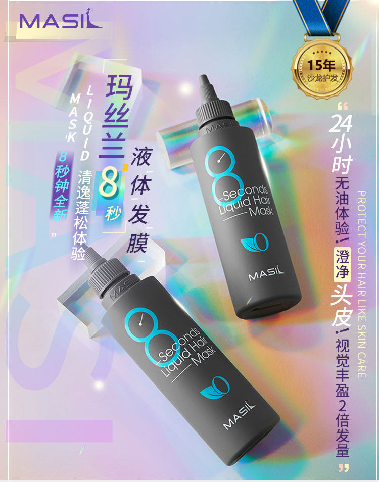 Masil玛丝兰8秒发膜 免蒸修复干枯八秒柔顺头皮护发素液体营养精华200ml