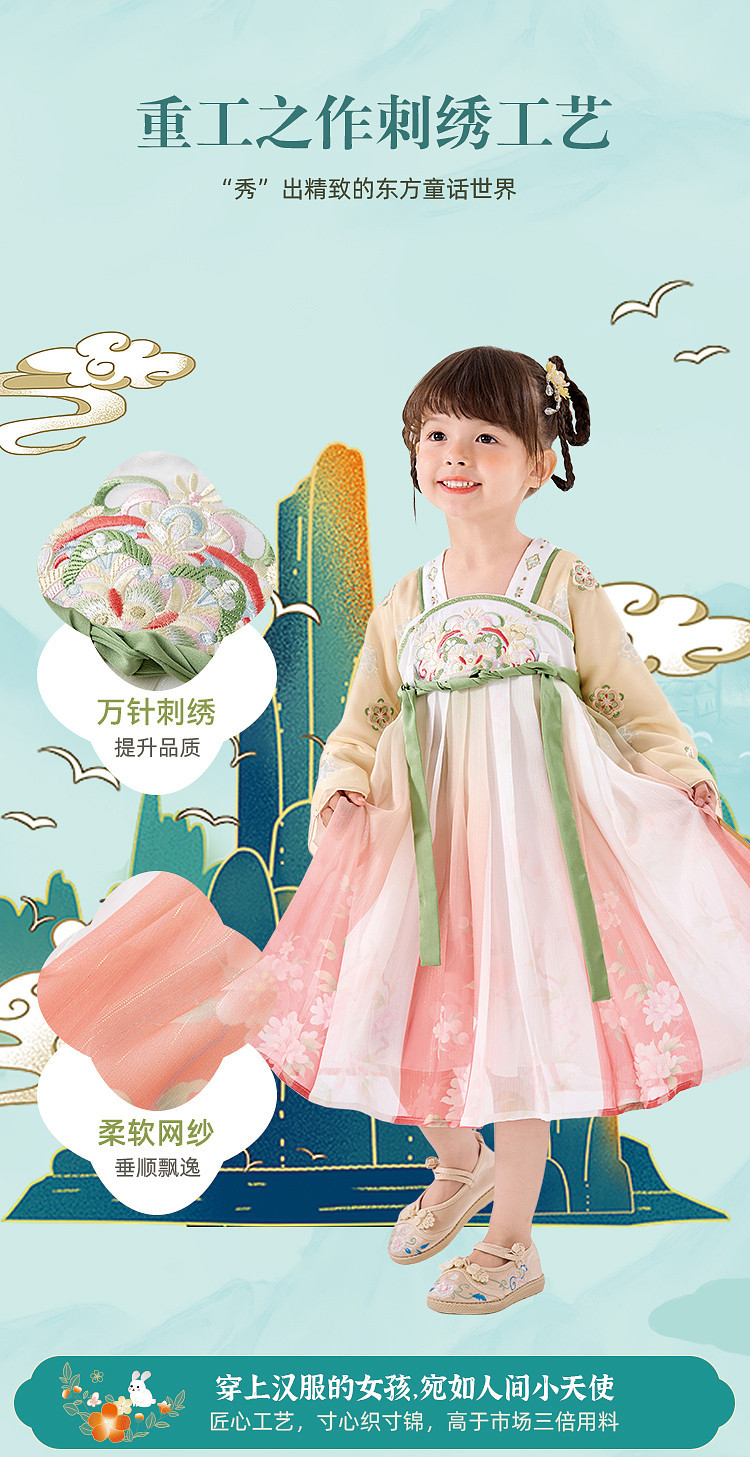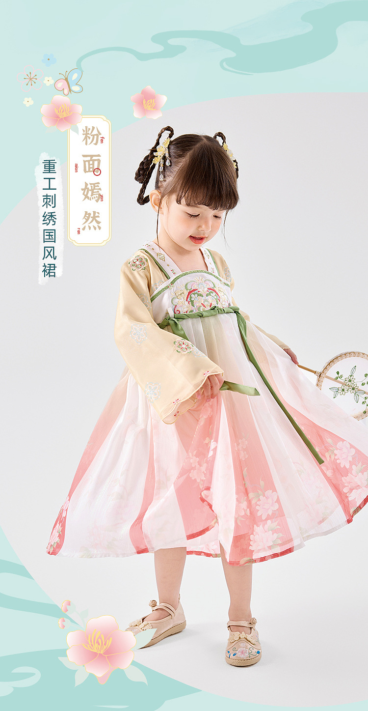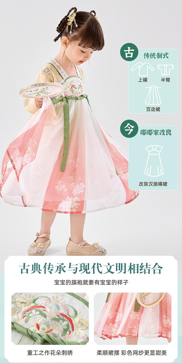 嘟嘟家女童汉服裙2025春季新款女宝国风连衣裙春装女孩演出服童装