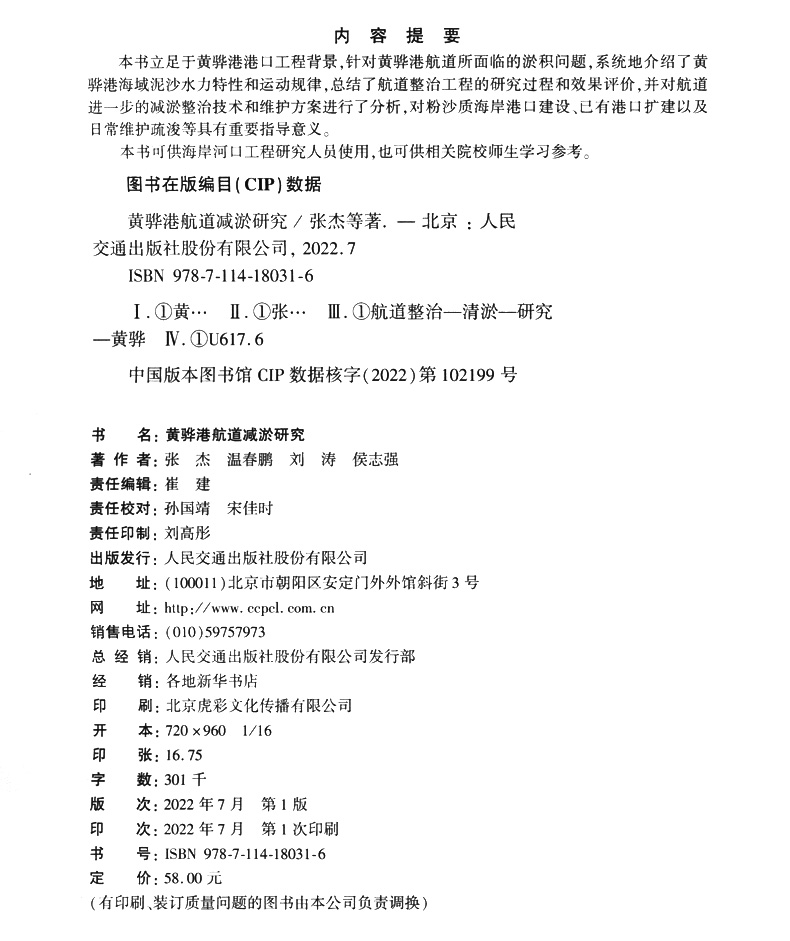书名:黄骅港航道减淤研究