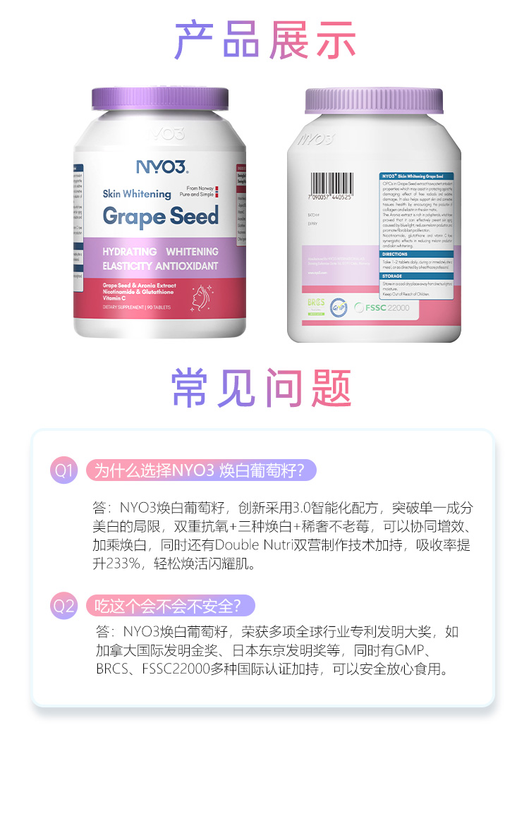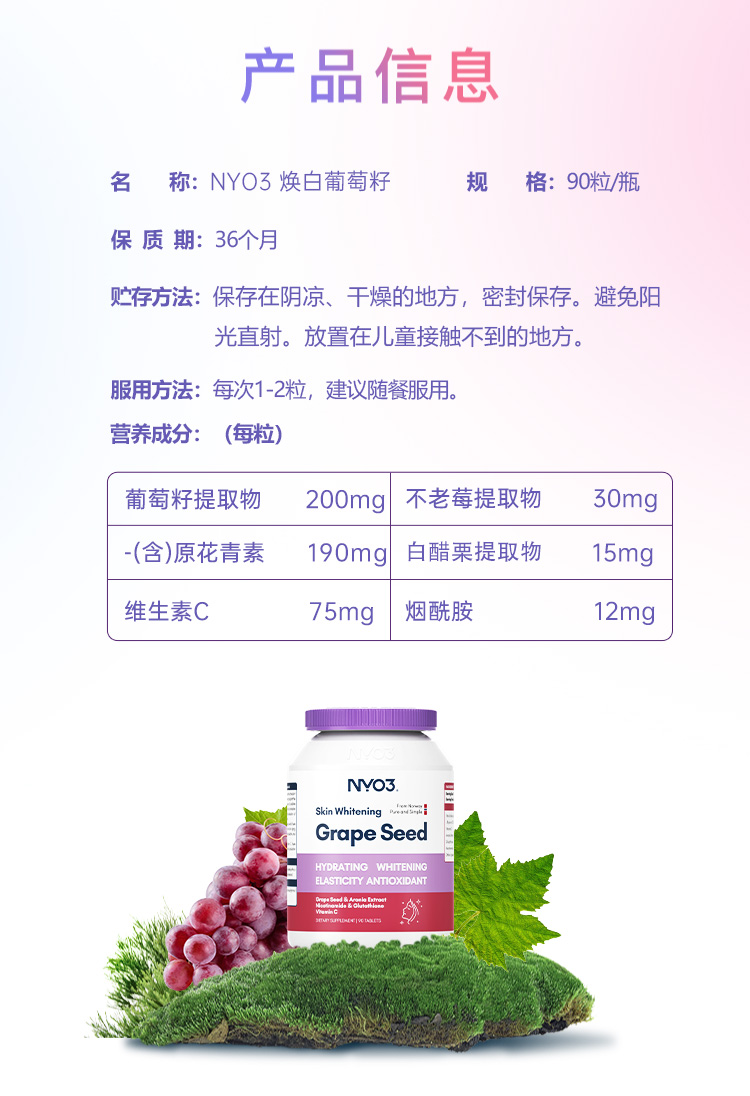 NYO3诺威佳官方旗舰店葡萄籽胶囊花青素美白丸口服内调vc淡斑90粒