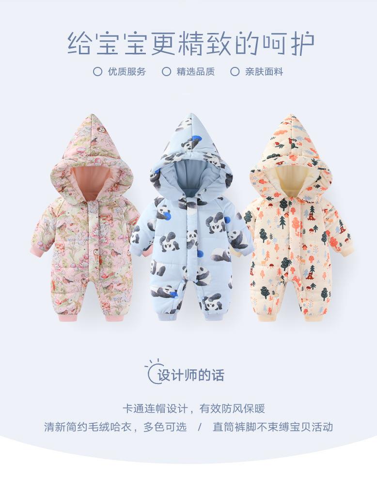 宝宝冬款加厚保暖连体衣新生儿羊羔绒爬服幼儿外出服婴幼儿衣服
