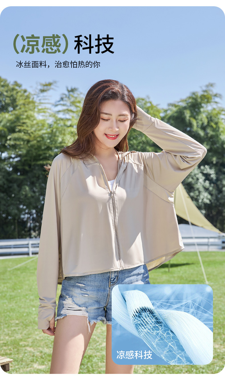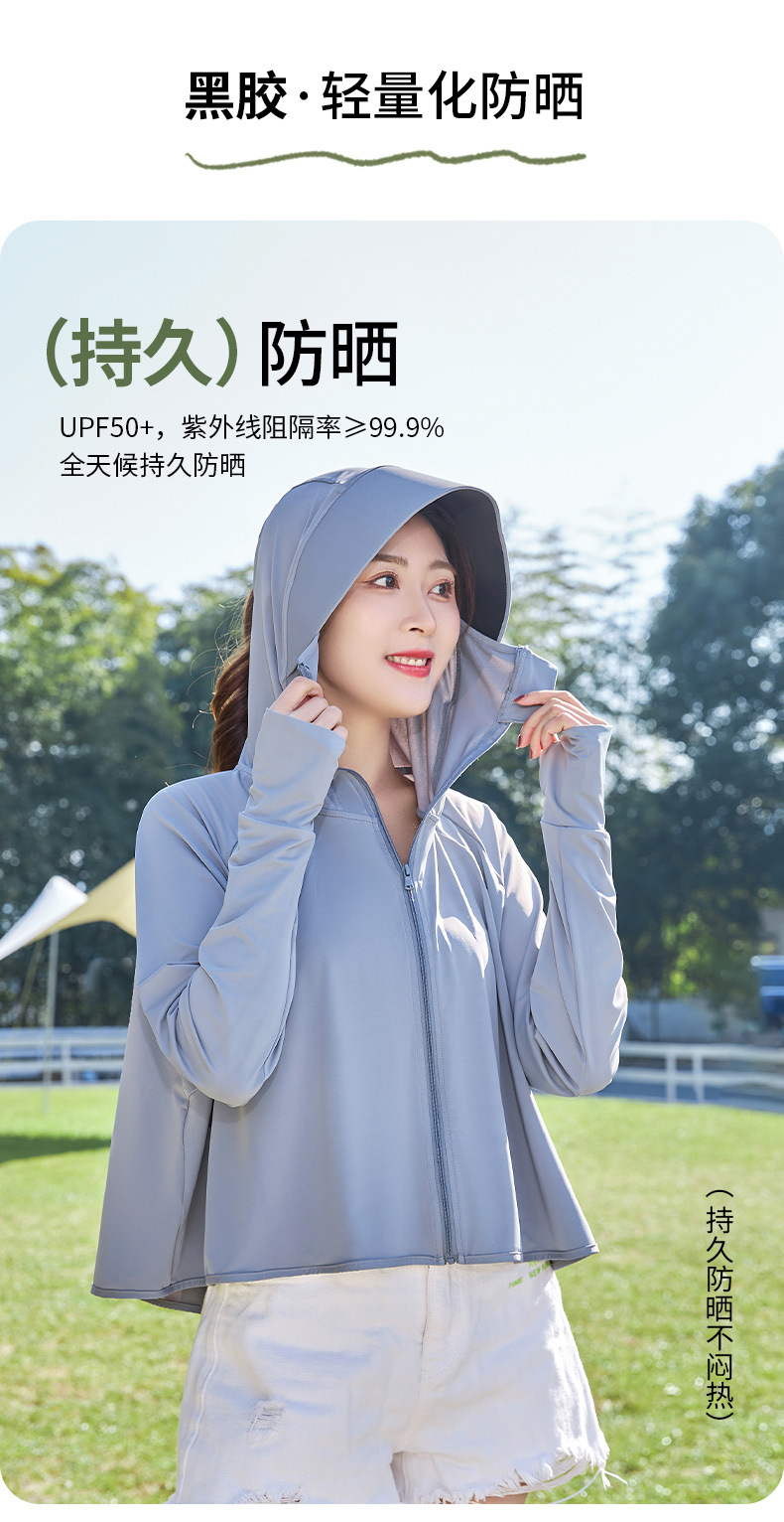 【一件抵6件!全面防晒】2023新款焦下短款防晒衣,女夏季防紫外线,黑胶冰丝连帽防晒服,有效阻隔紫外线99.9%,吸湿速干,运动持续干爽,加宽黑胶帽檐,透气不闷热!
