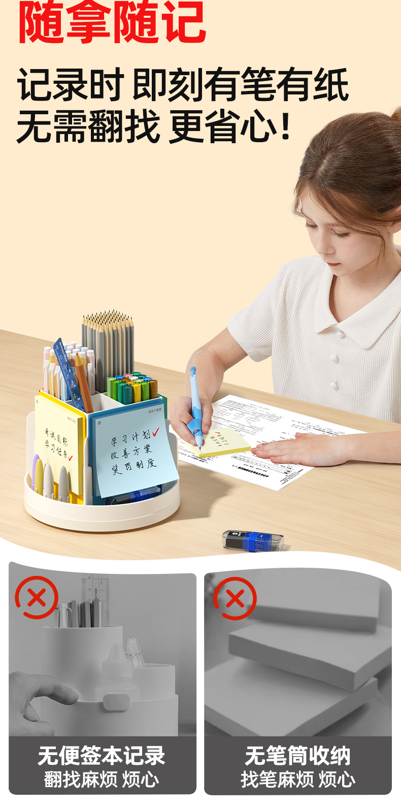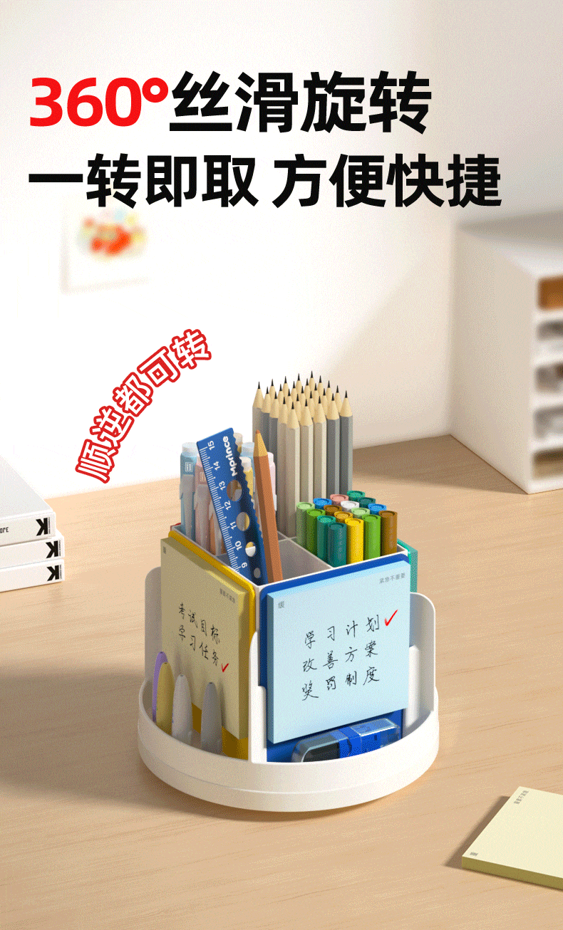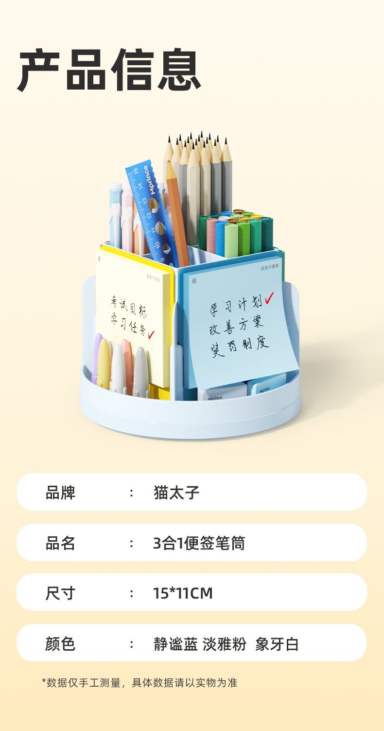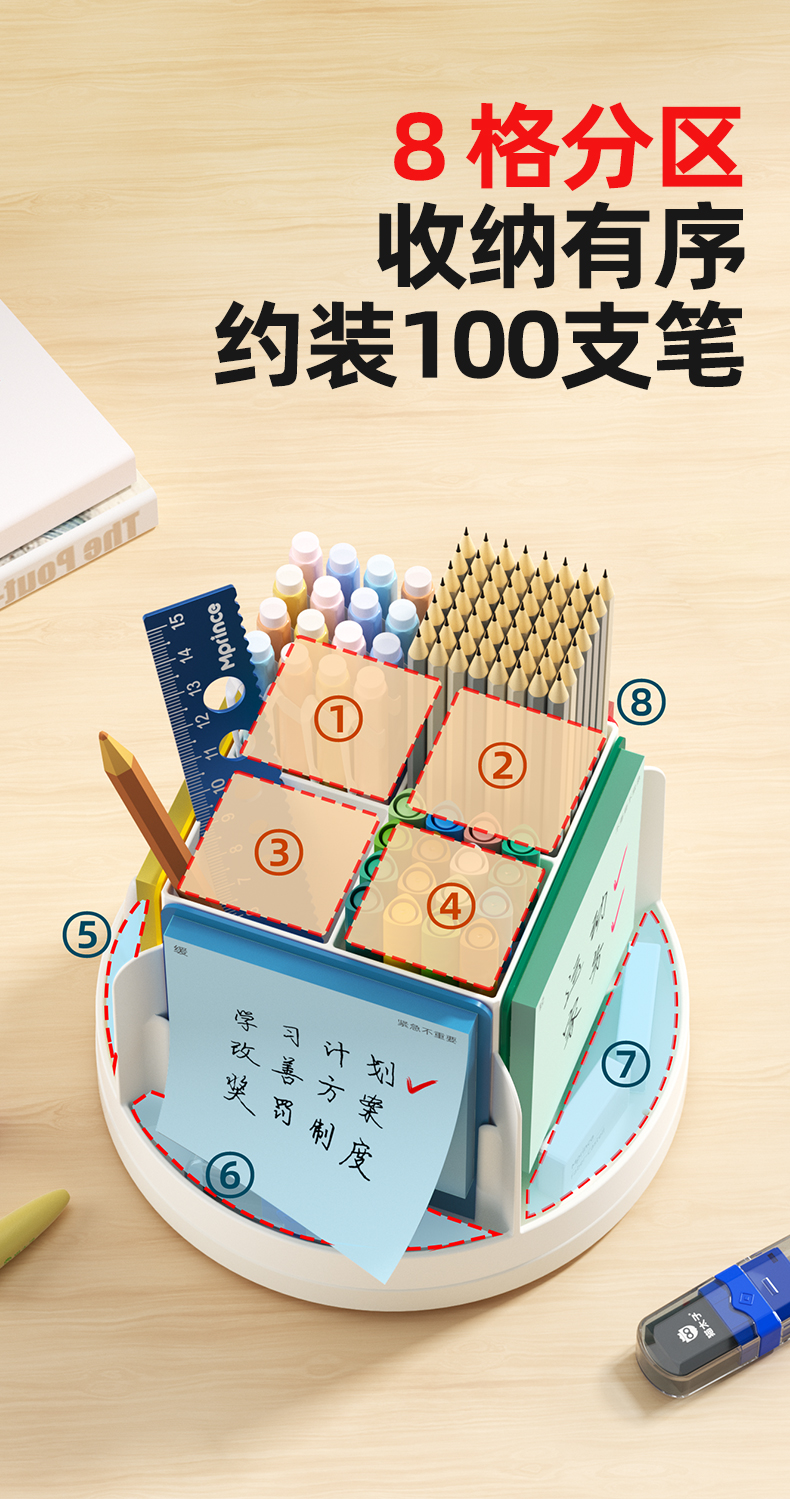 【开学季】猫太子大容量360度旋转笔筒学生桌面收纳盒儿童男孩女孩笔桶办公室桌面创意可爱多功能笔盒文具高颜值ins风 0806