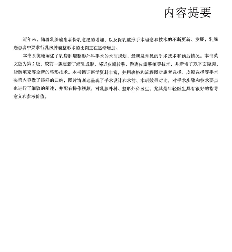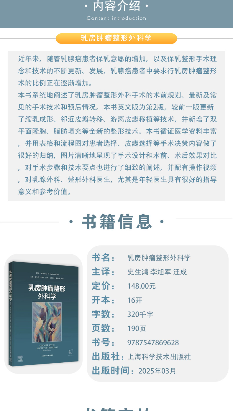乳房肿瘤整形外科学 史生鸿 李旭军 汪成 主译 系统地阐述了乳房肿瘤整形外科手术的术前规划 并配有操作视频 上海科学技术出版社