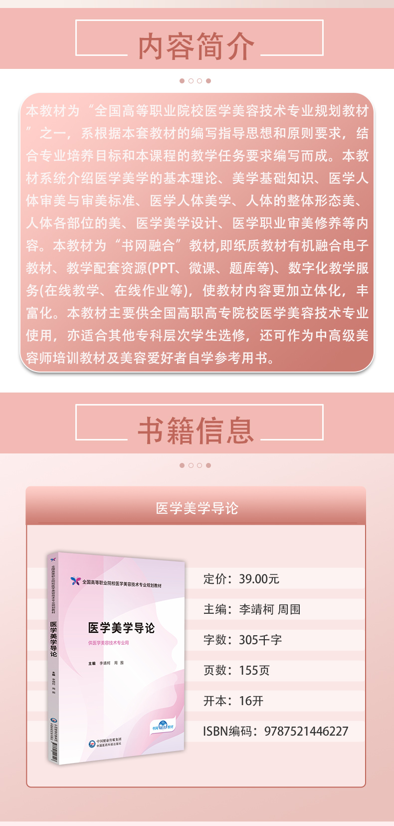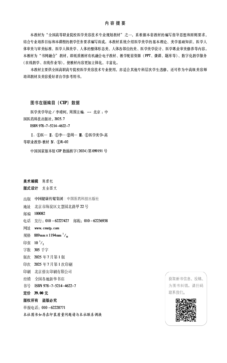 医学美学导论(全国高等职业院校医学美容技术专业规划教材)李靖柯 周围 供医学美容技术专业用 9787521446227中国医药科技出版社