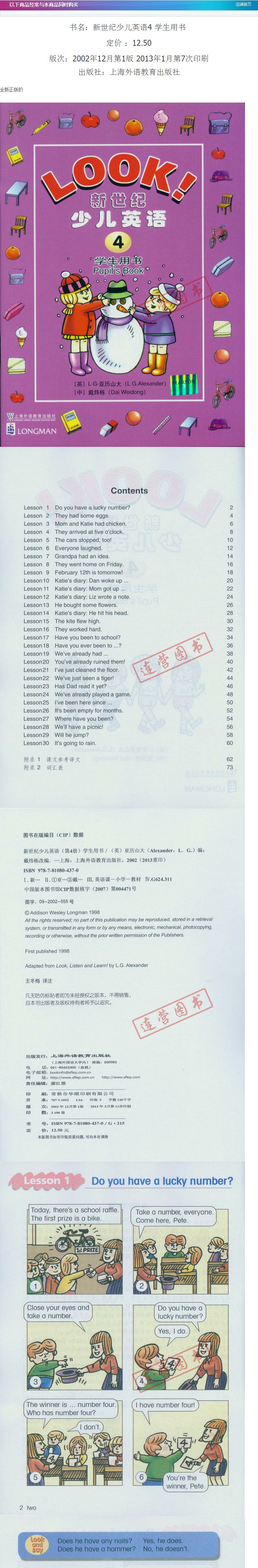 全新正版 现货 LOOK 外教社 新世纪LOOK!新世纪少儿英语4学生用书