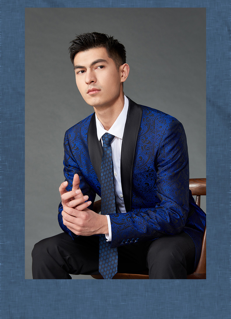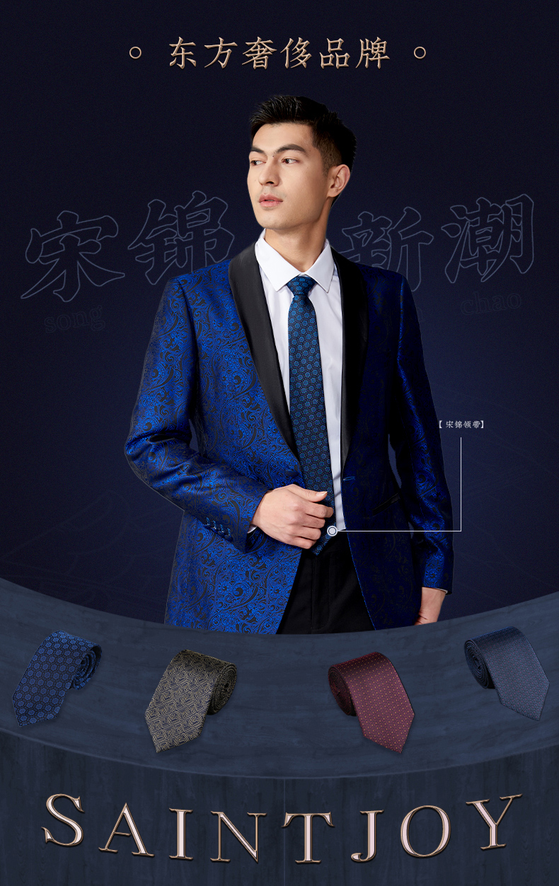 SAINTJOY/上久楷 宋锦领带 S纹 孔雀蓝LD15602-1