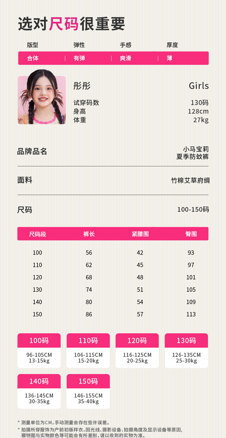 小马宝莉联名年衣童装防蚊裤夏季新款女童卡通风凉感长裤休闲裤子