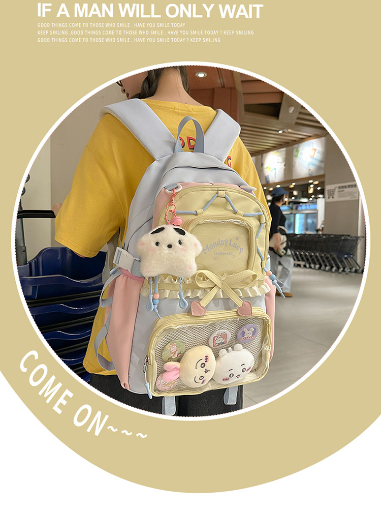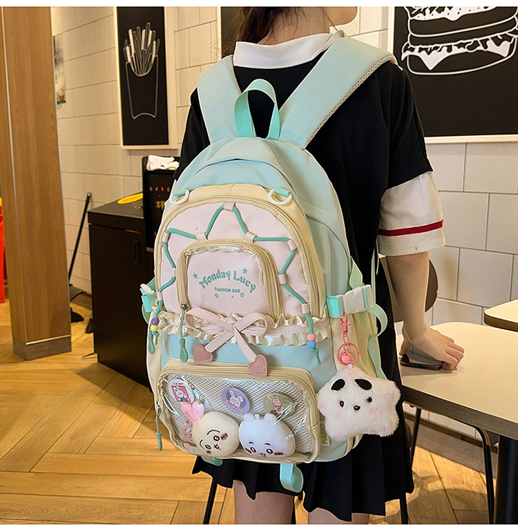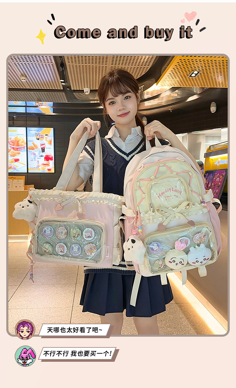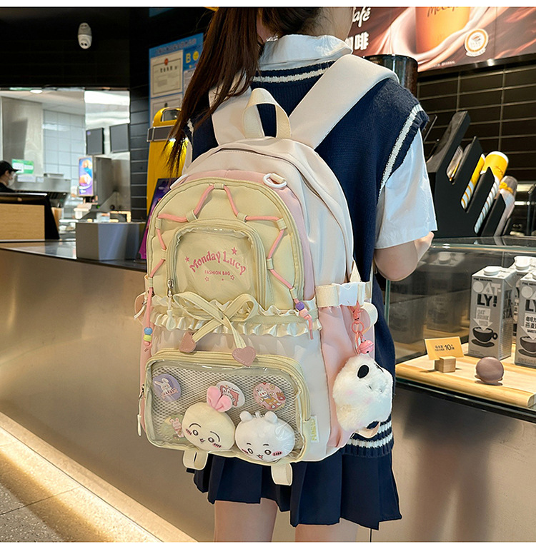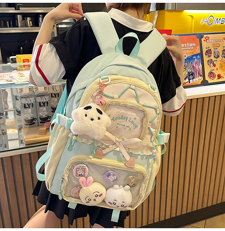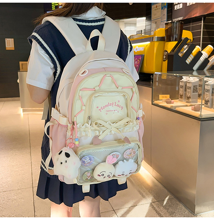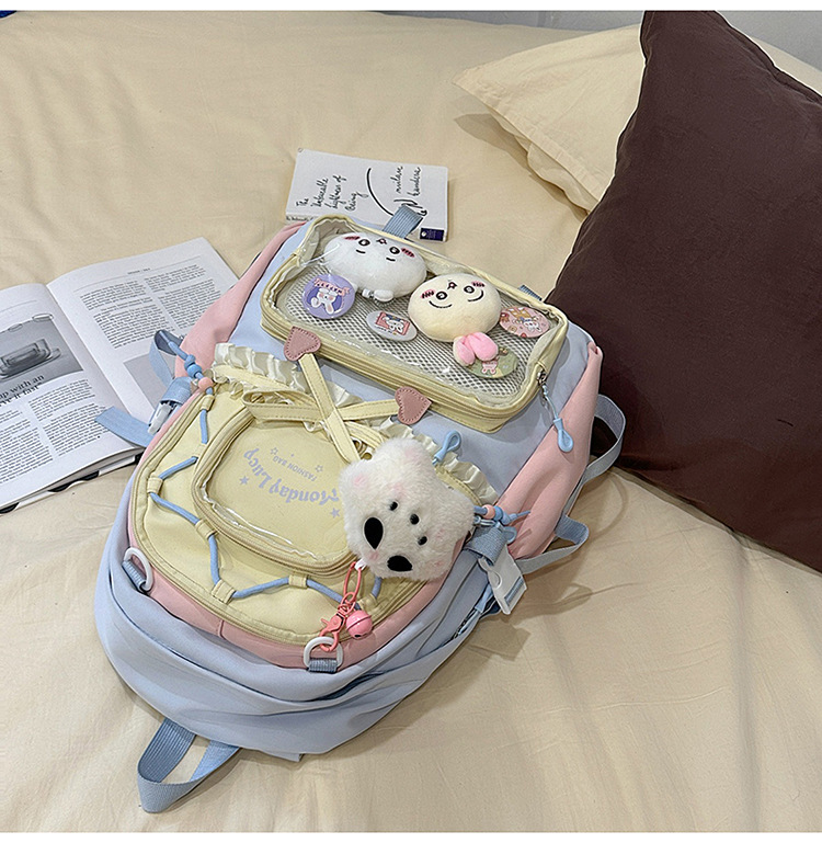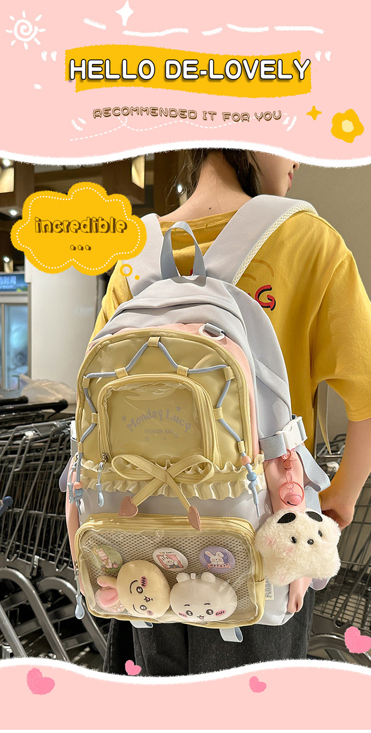 【开学季❗️撞色学院风双肩包】软萌可爱褶皱花边痛包,减负护脊透气舒适,加宽加厚肩带,新升级护脊减负,男女孩童可爱休闲太空双肩背包开学季L