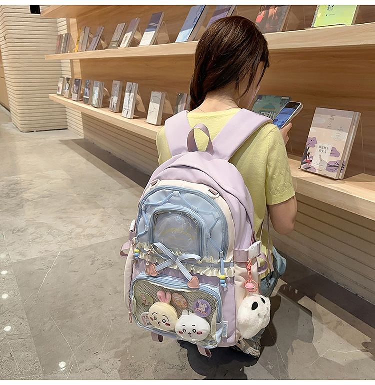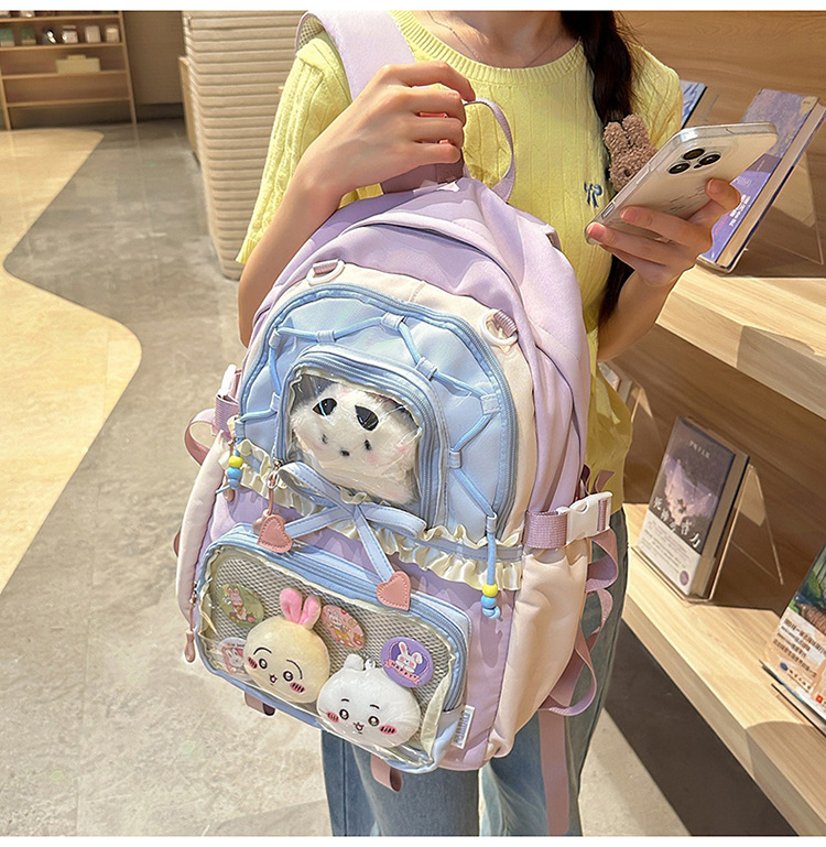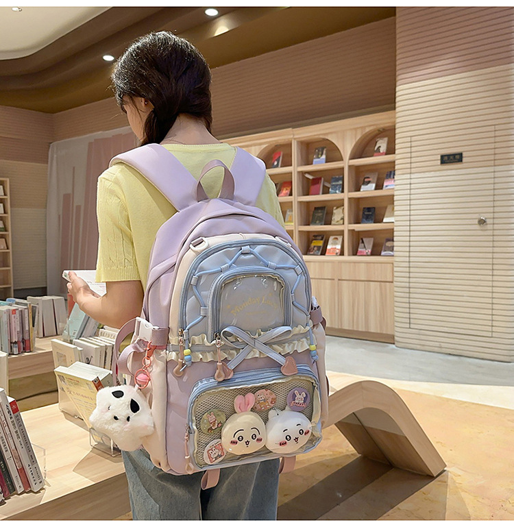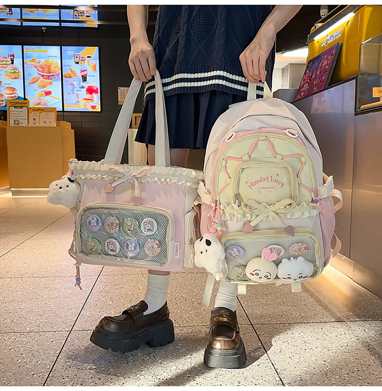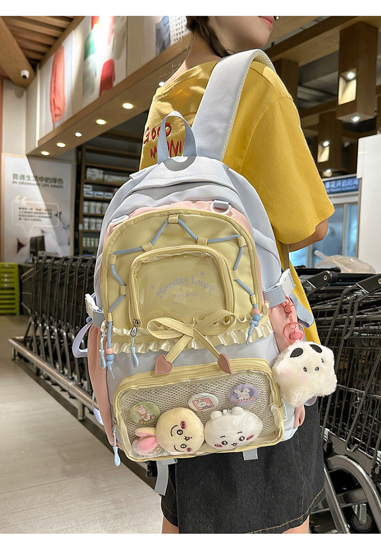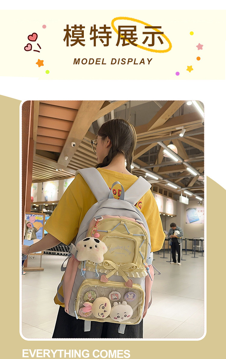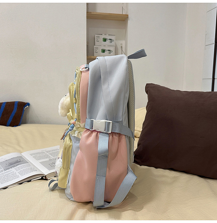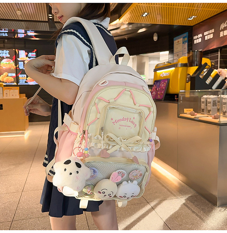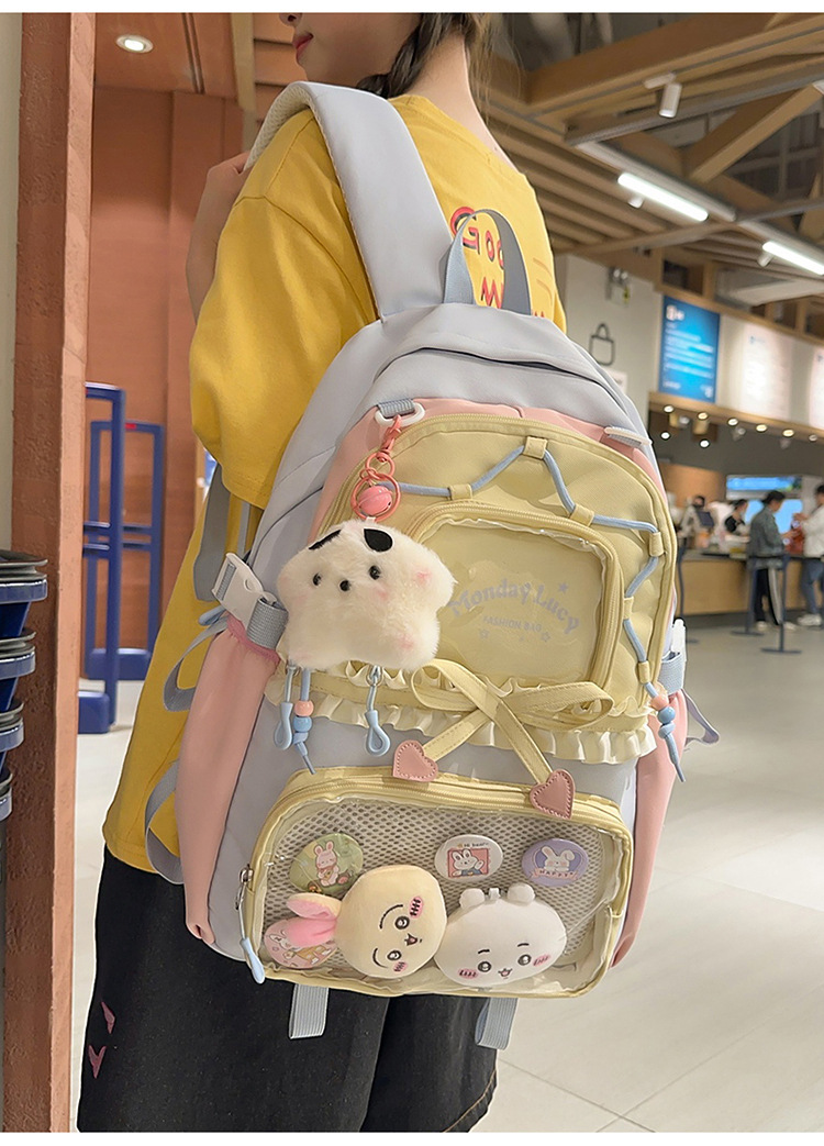 【开学季❗️撞色学院风双肩包】软萌可爱褶皱花边痛包,减负护脊透气舒适,加宽加厚肩带,新升级护脊减负,男女孩童可爱休闲太空双肩背包开学季L