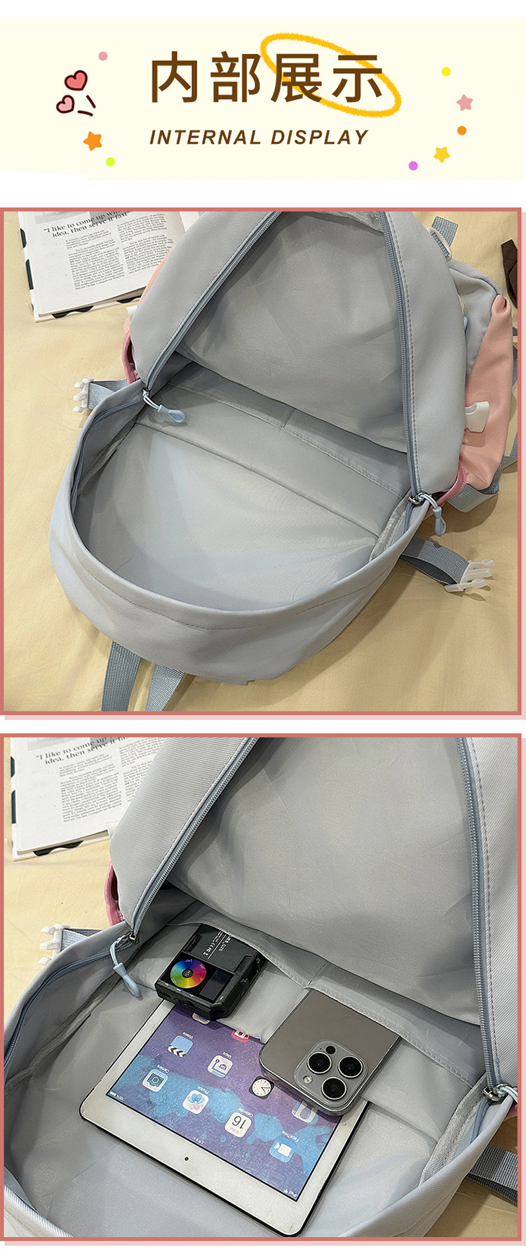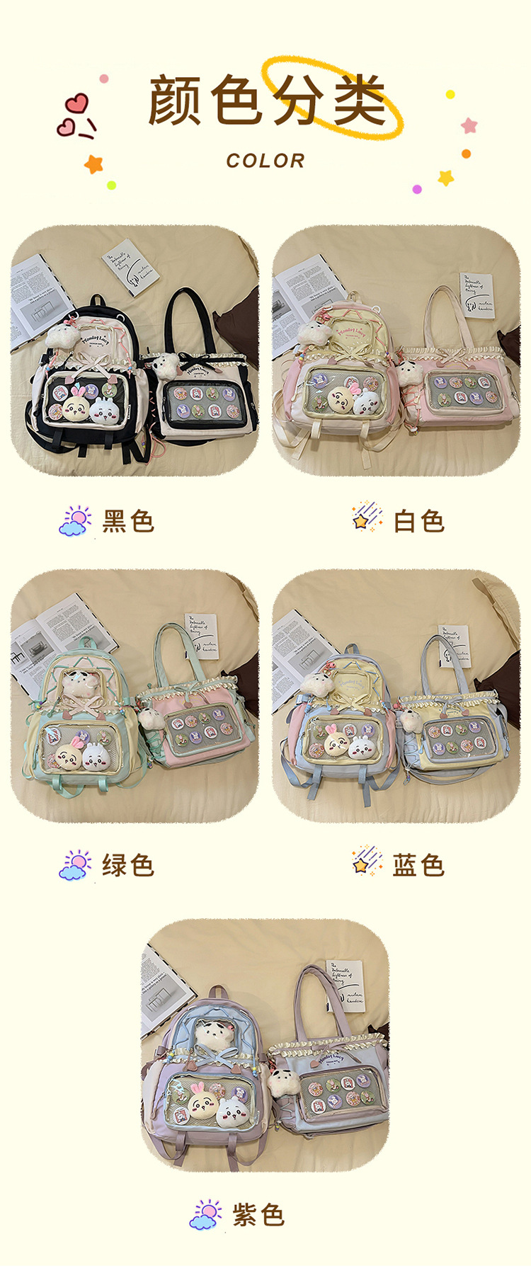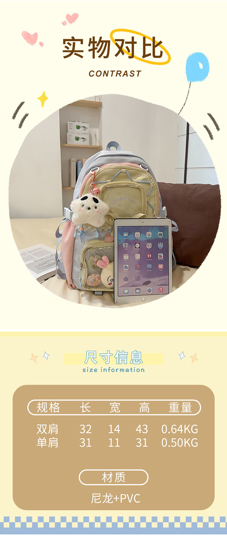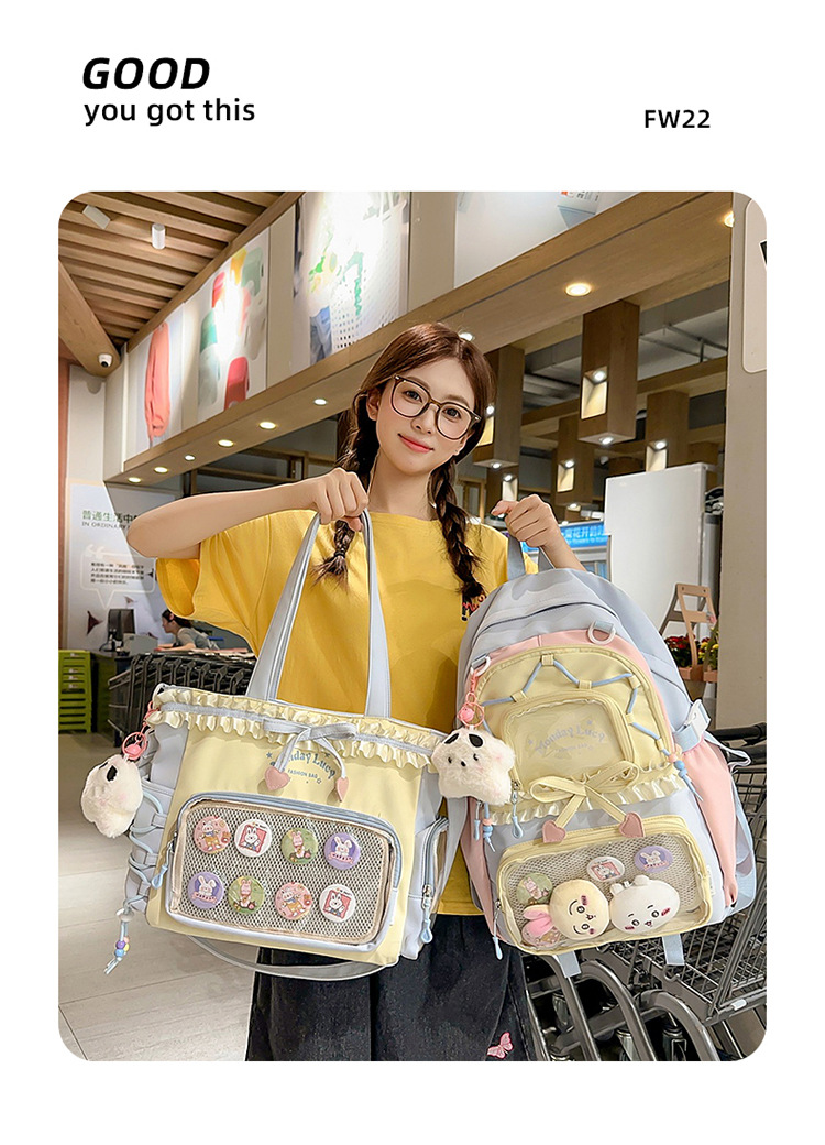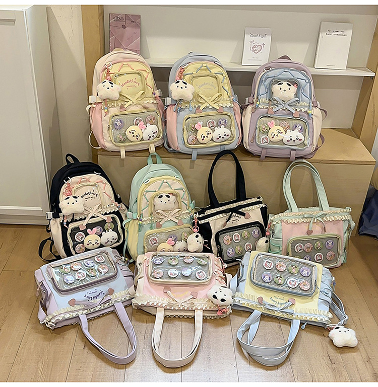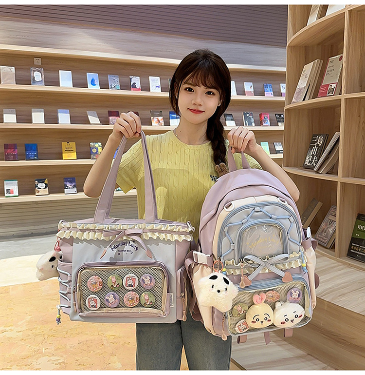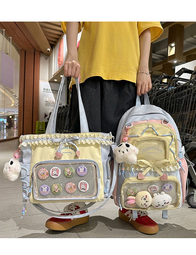 【开学季❗️撞色学院风双肩包】软萌可爱褶皱花边痛包,减负护脊透气舒适,加宽加厚肩带,新升级护脊减负,男女孩童可爱休闲太空双肩背包开学季L