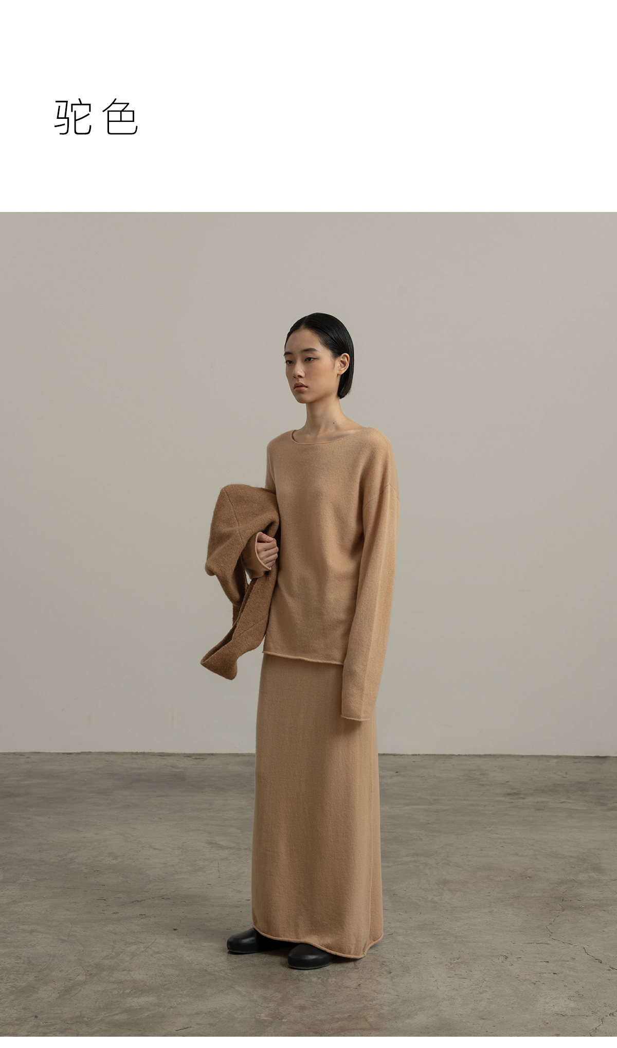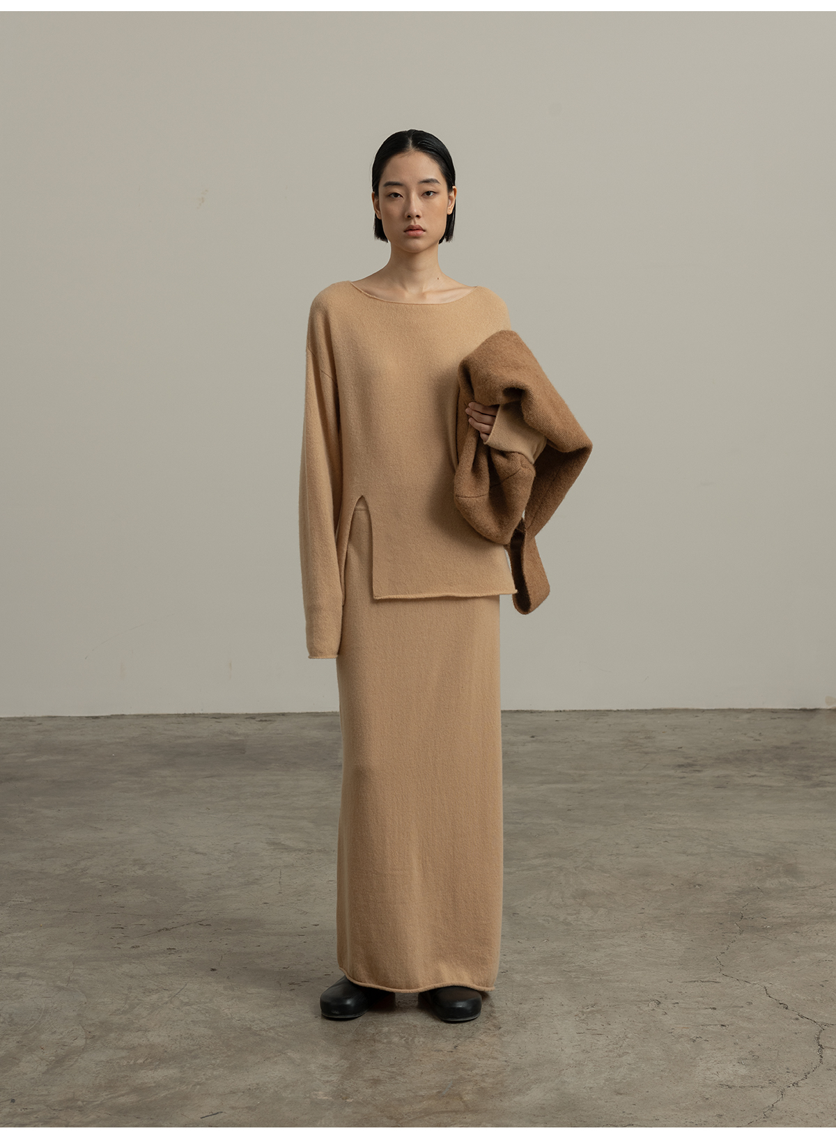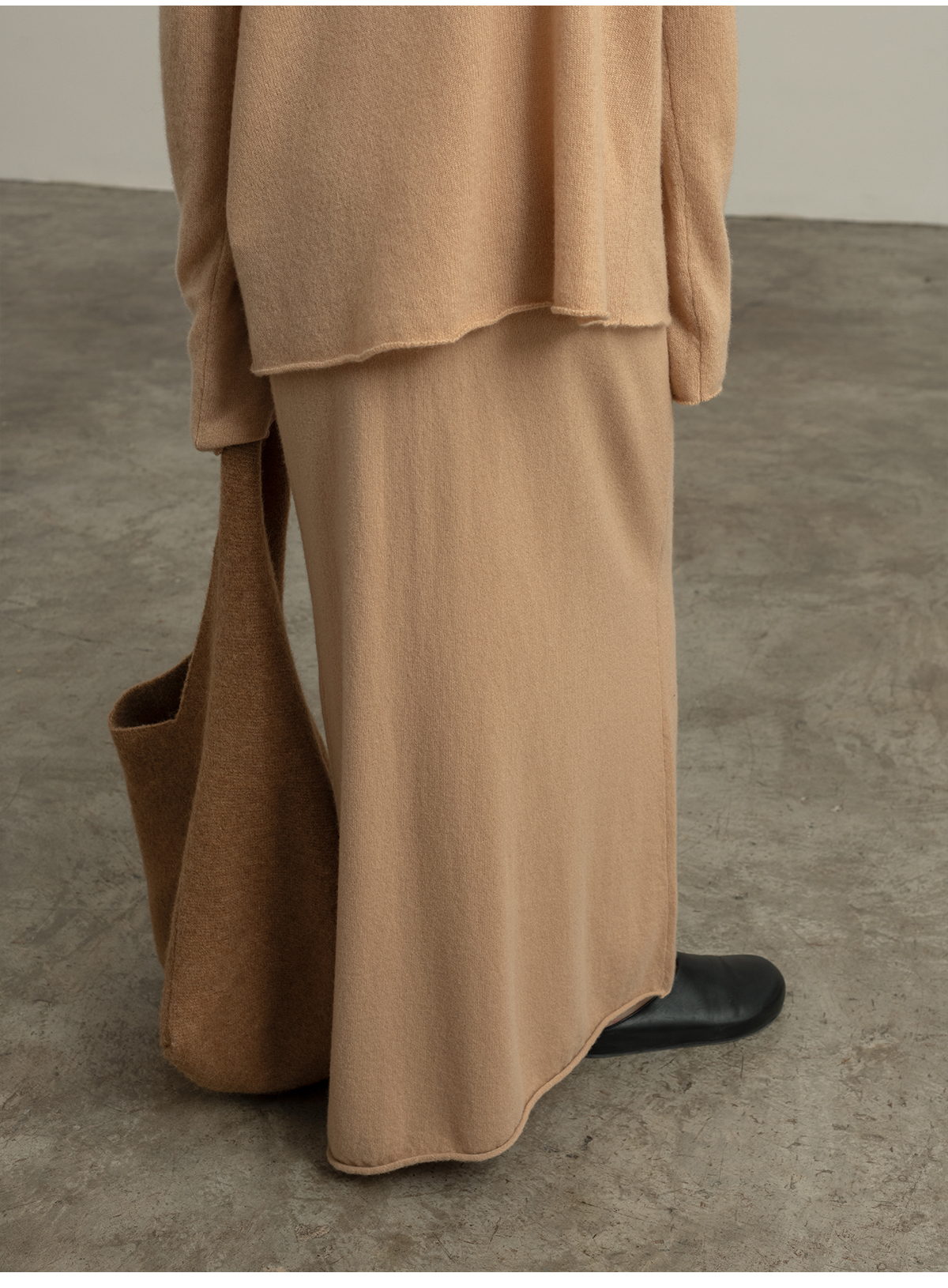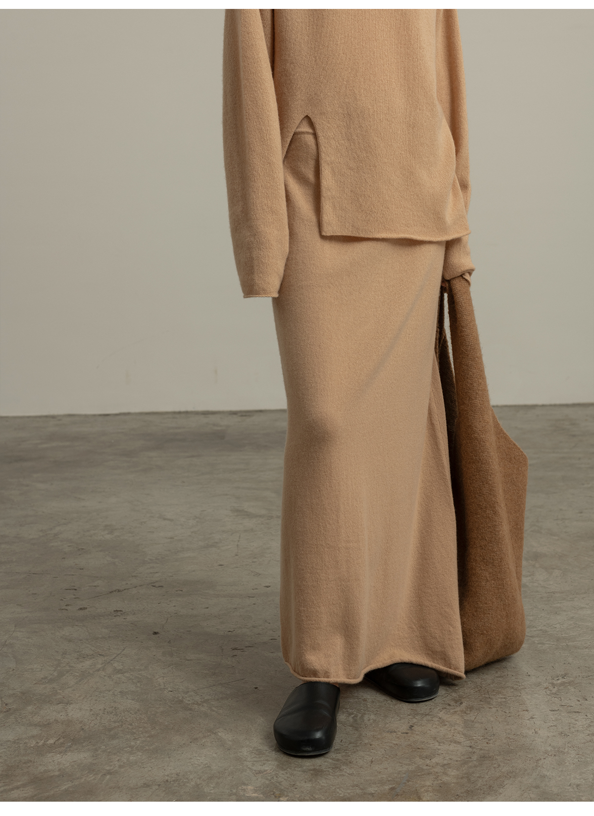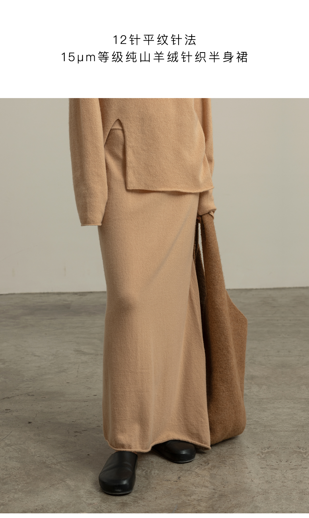322工房经典再造纯喀什米尔羊毛不规则针织半身裙2023秋冬直筒裙女B141