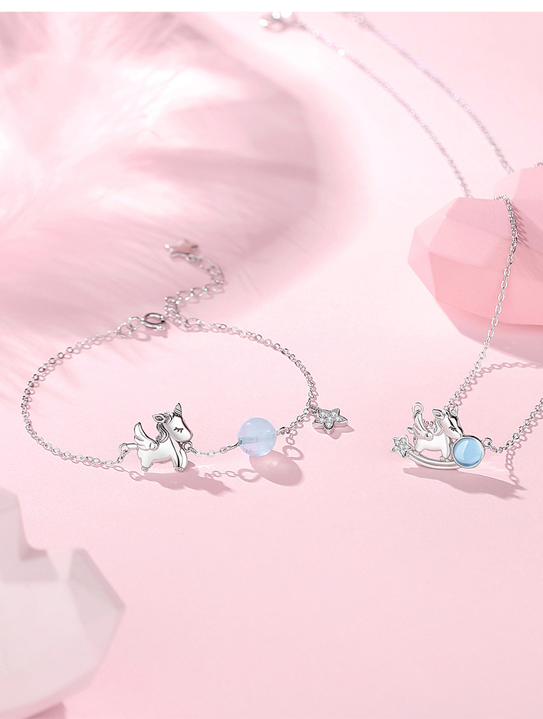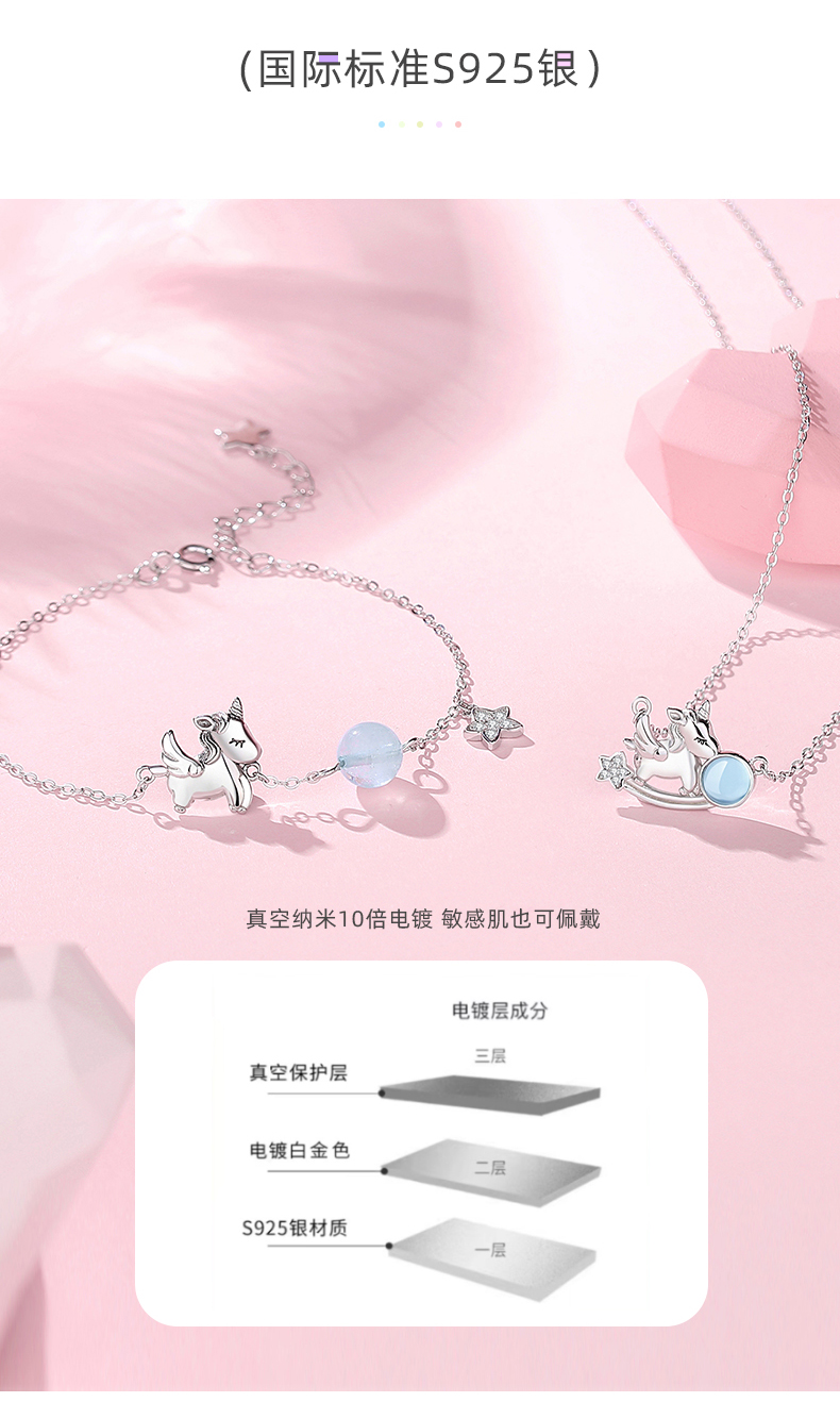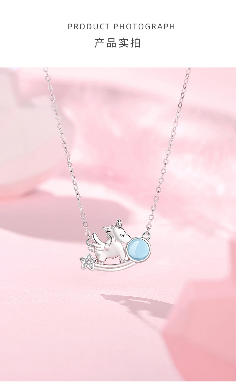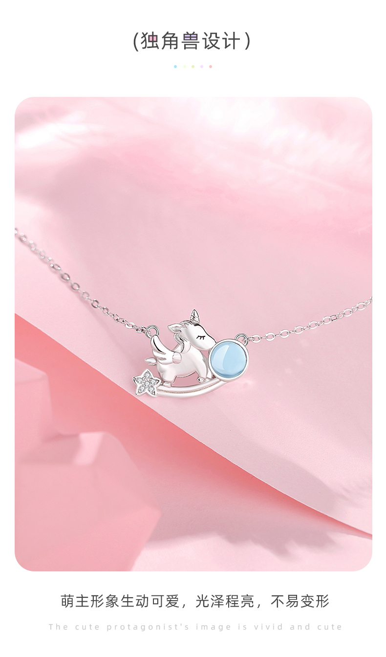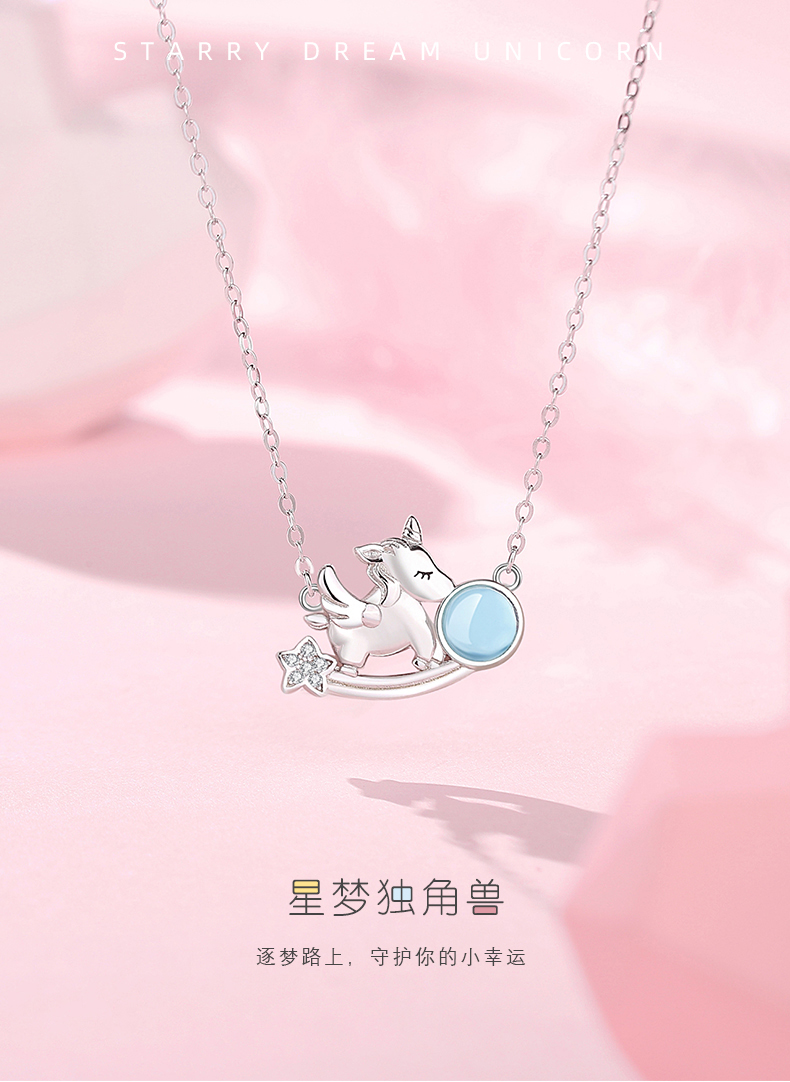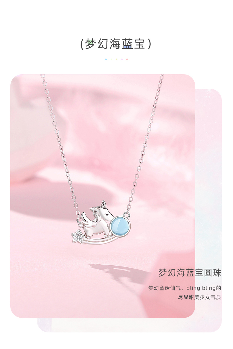 卡蒂罗/KADER 星梦独角兽项链 在逃公主灵动精致轻奢简约设计锁骨链 梦幻海蓝宝可爱甜美好运吊坠 925银 礼物