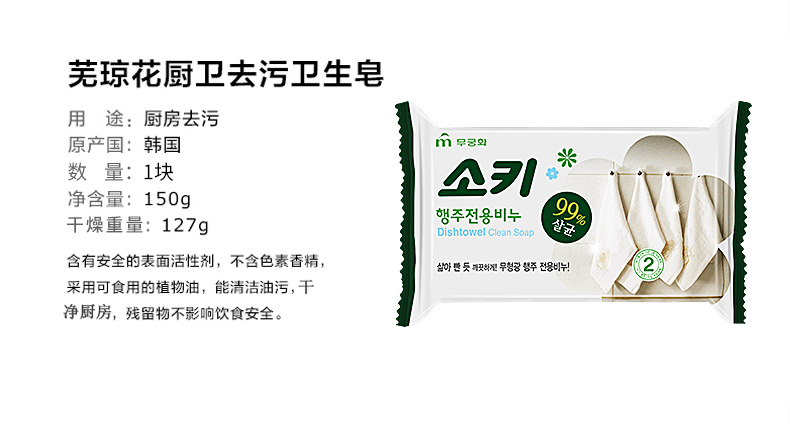 【中欧班列精选】XDR 韩国 芜琼花厨卫去污抹布皂150g/块 2块