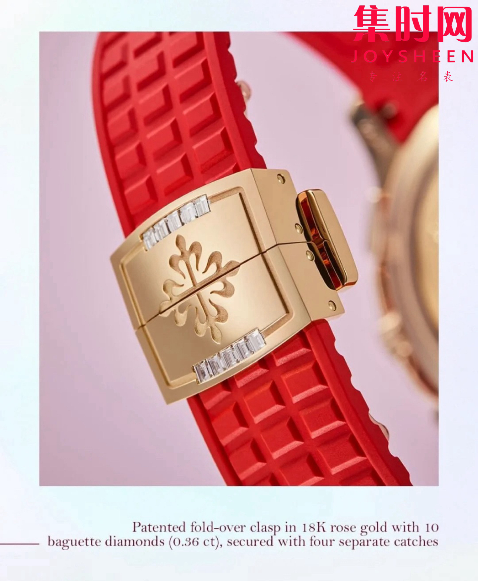 表带/表扣:定制复合橡胶材质表带,专利镶钻折叠式表扣。