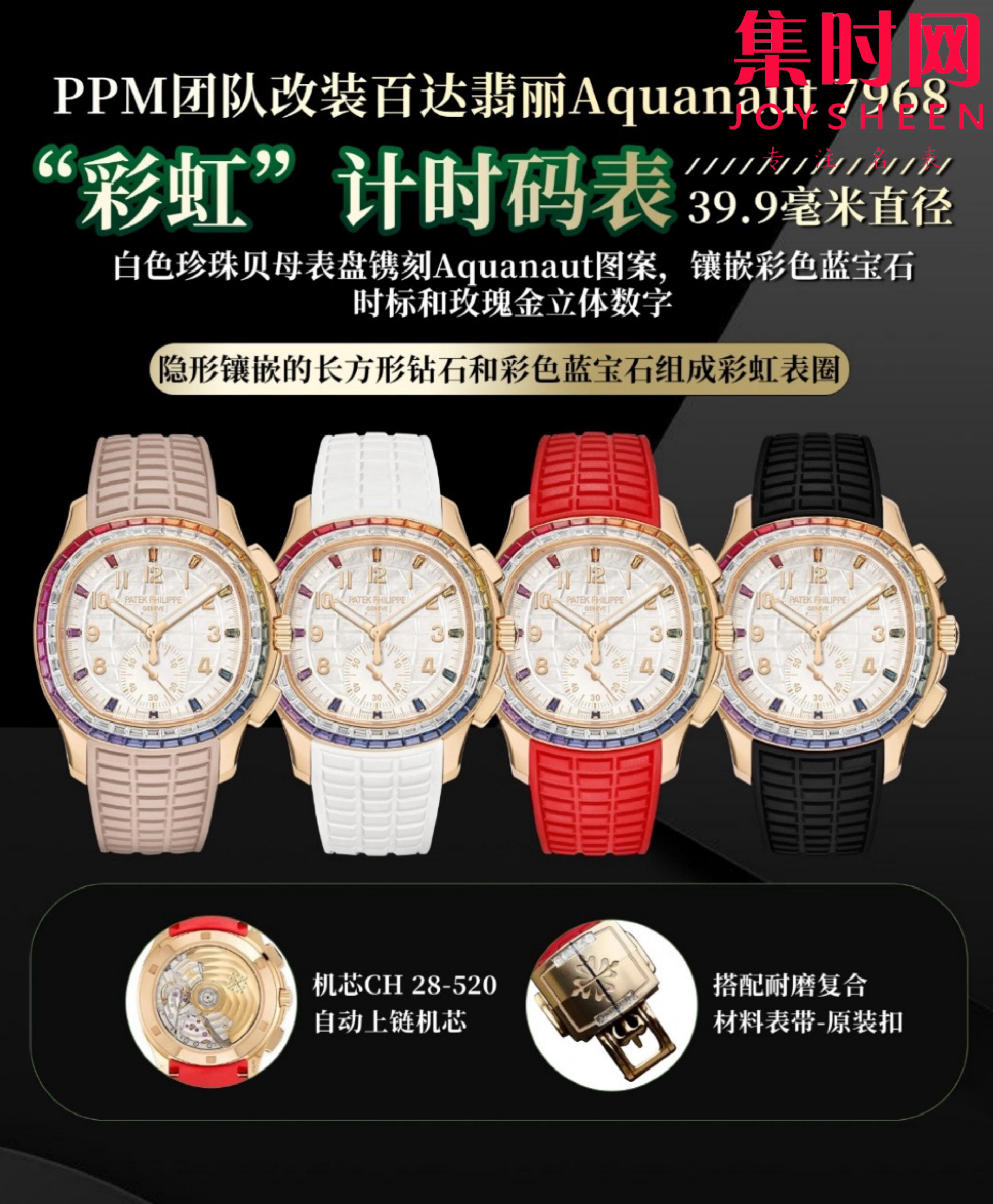 PPM百达翡丽Aquanaut系列 糖豆圈 彩虹圈手雷7968中性腕表 男女皆可佩戴 小手腕福音!Luce7968-“彩虹”计时腕表!
