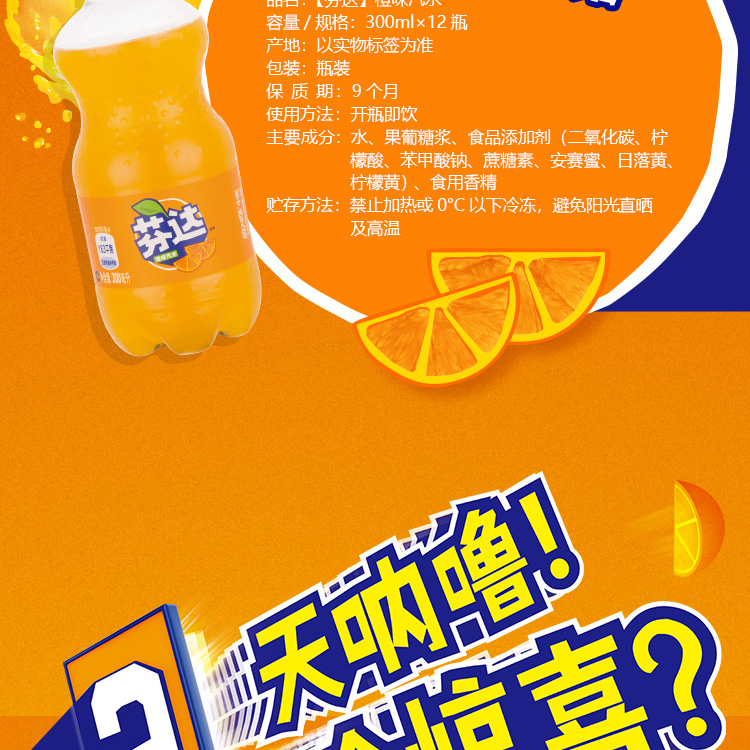 芬达 Fanta 橙味汽水 碳酸饮料 300ml*12瓶 整箱装 可口可乐出品 新老包装随机发货