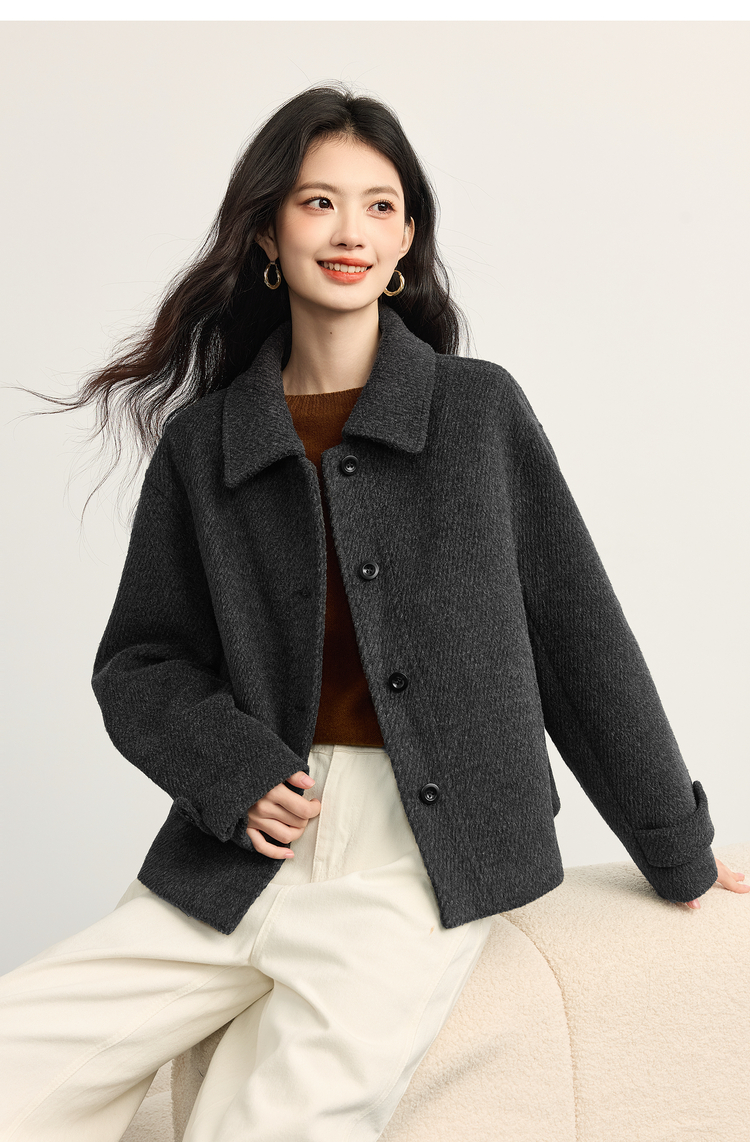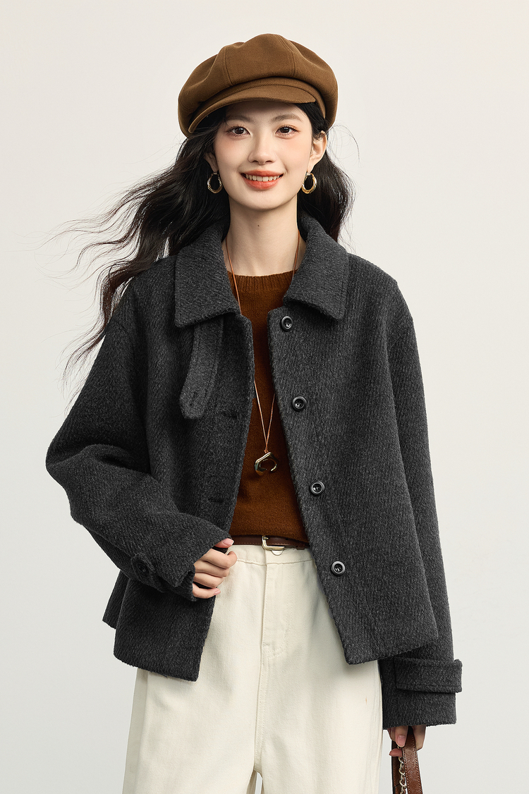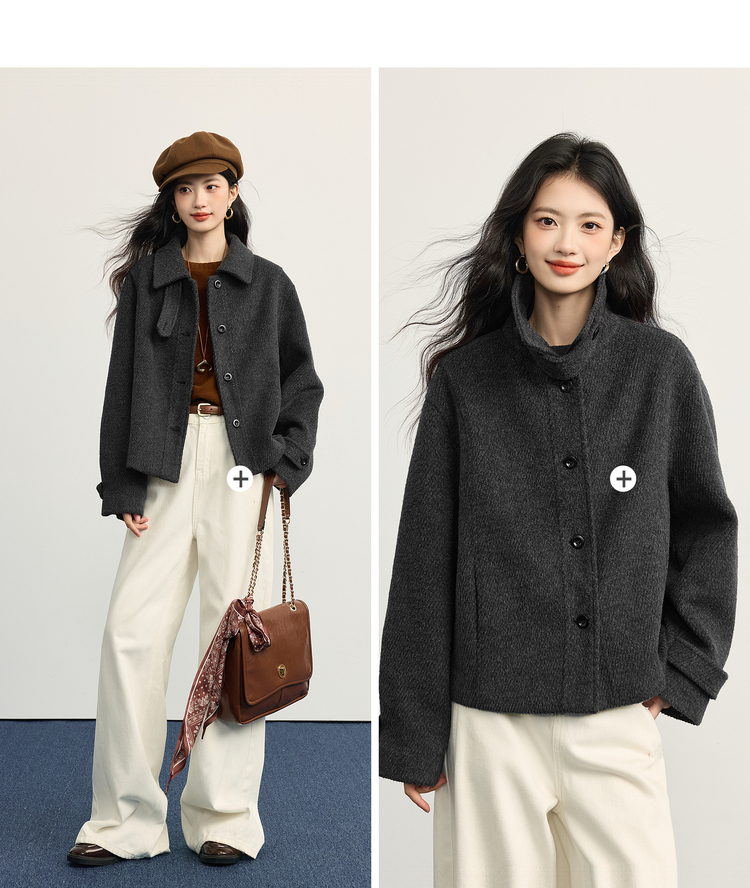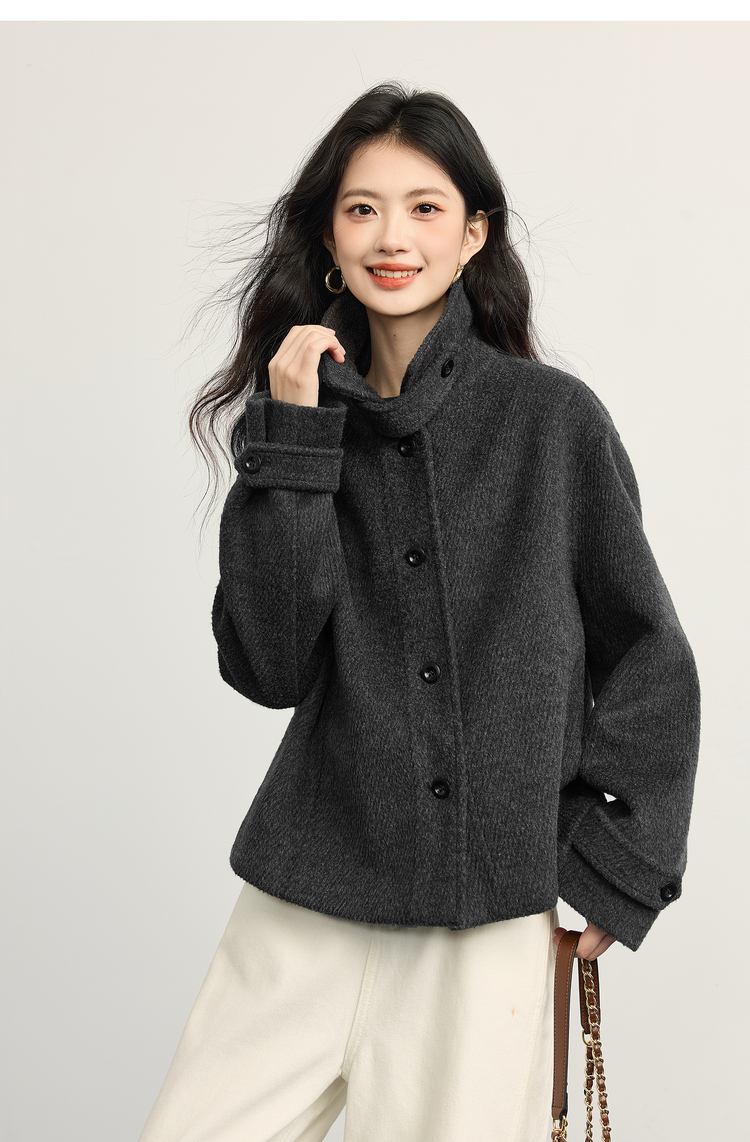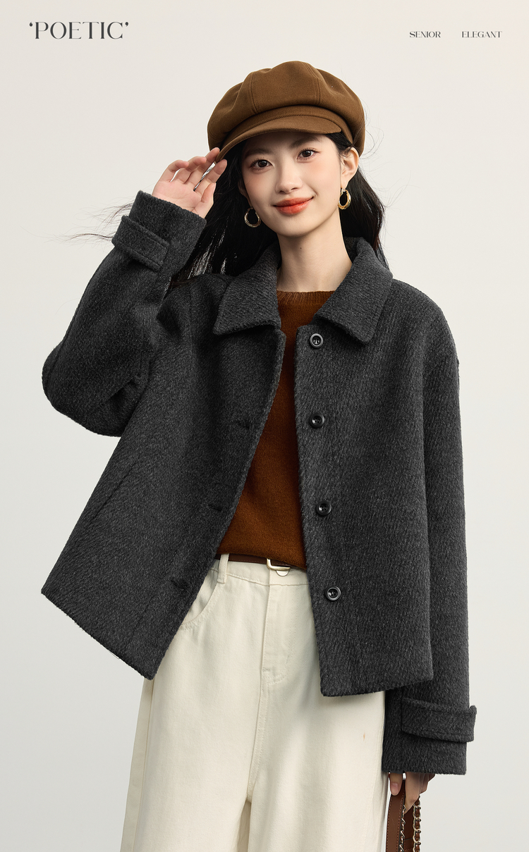 【10/29新品】熙世界星空灰夹棉毛呢外套女秋冬新款羊毛翻领大衣小个子短款上衣