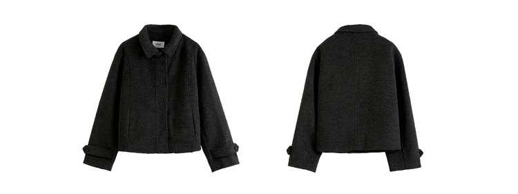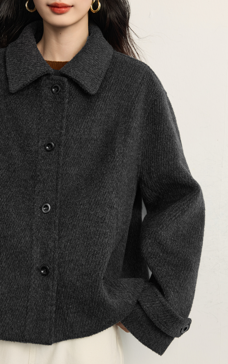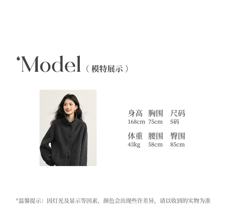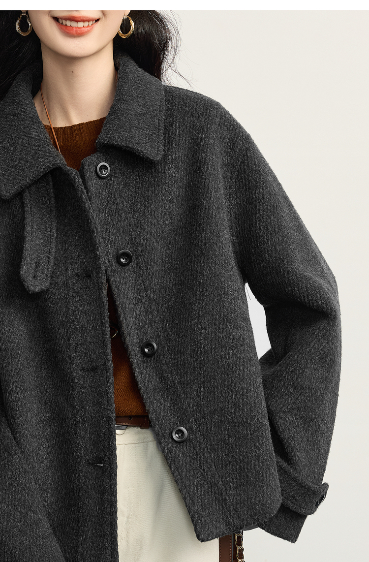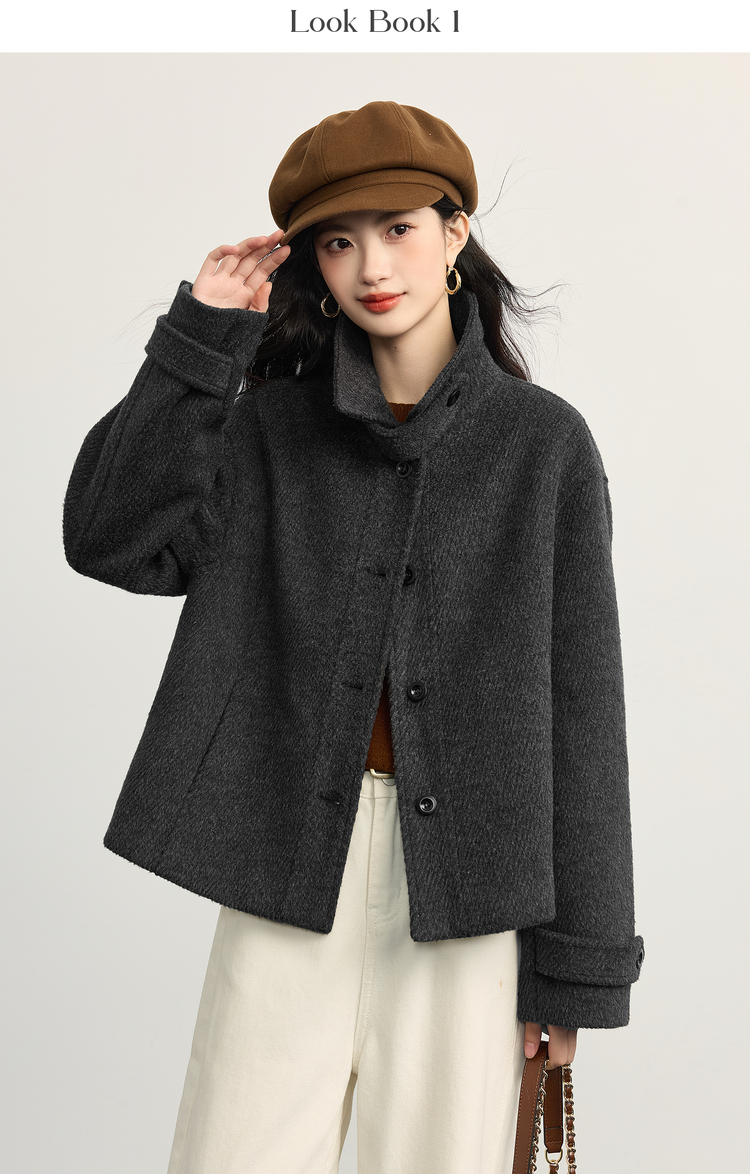 【10/29新品】熙世界星空灰夹棉毛呢外套女秋冬新款羊毛翻领大衣小个子短款上衣