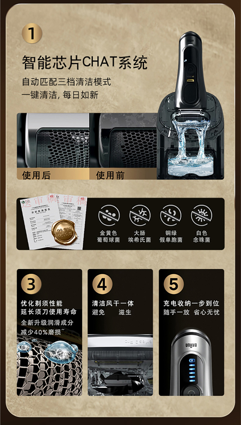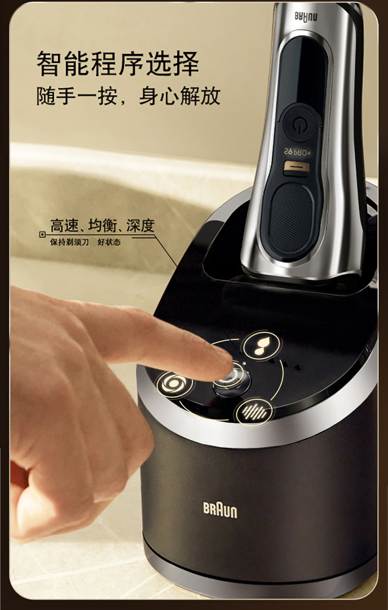 【B1】【感觉生活】德国博朗9系9677PC+CC电动剃须刀