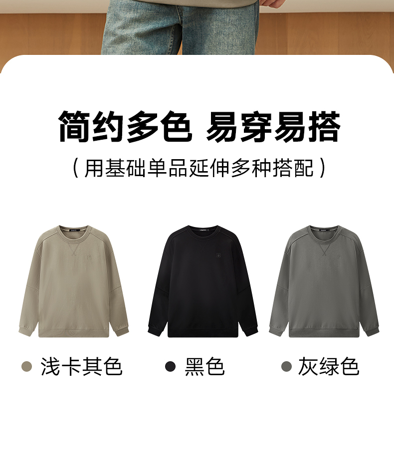 【3色可选】gxgjeans男装秋季休闲简约圆领套头卫衣男