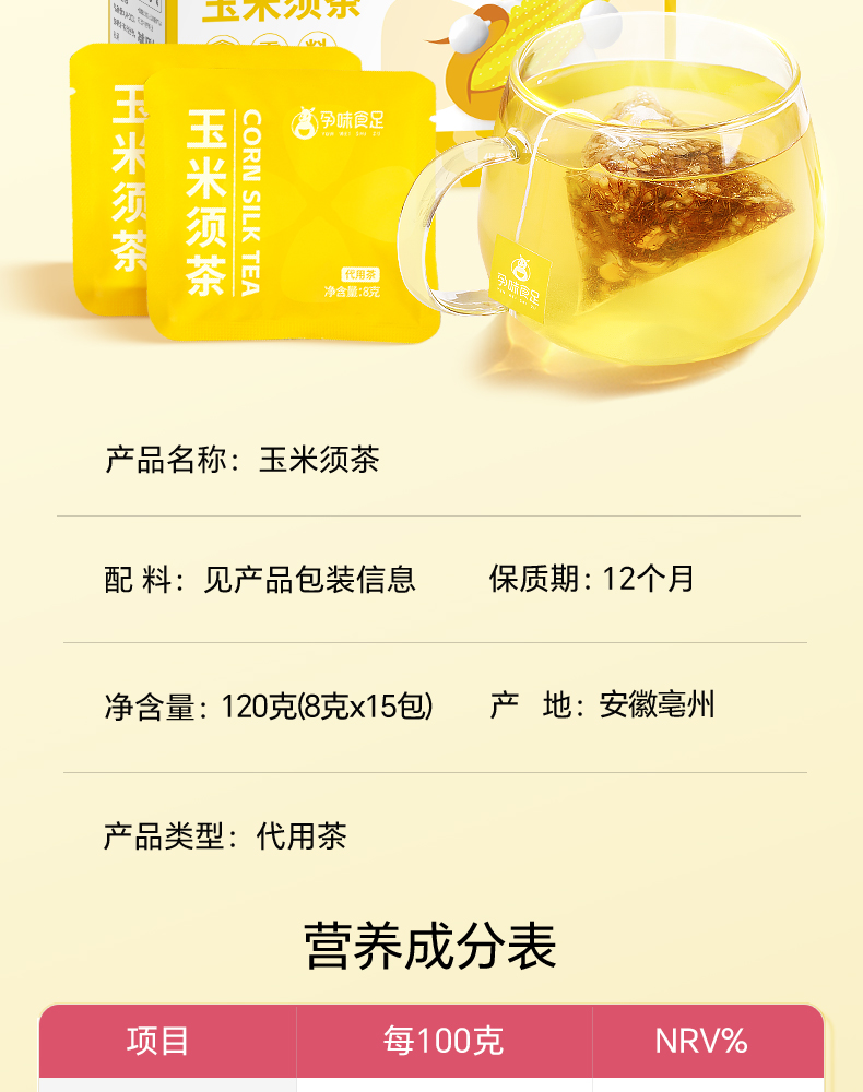 孕味食足玉米须茶专孕妇用喝的养生茶包减利肥水肿苦荞麦茶