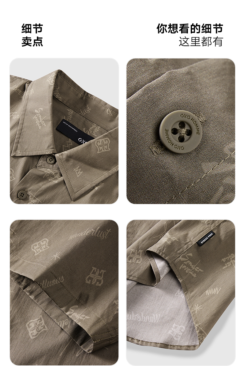 GXG男装 满印设计休闲短袖衬衫通勤男士日常薄外套 2025春季热卖