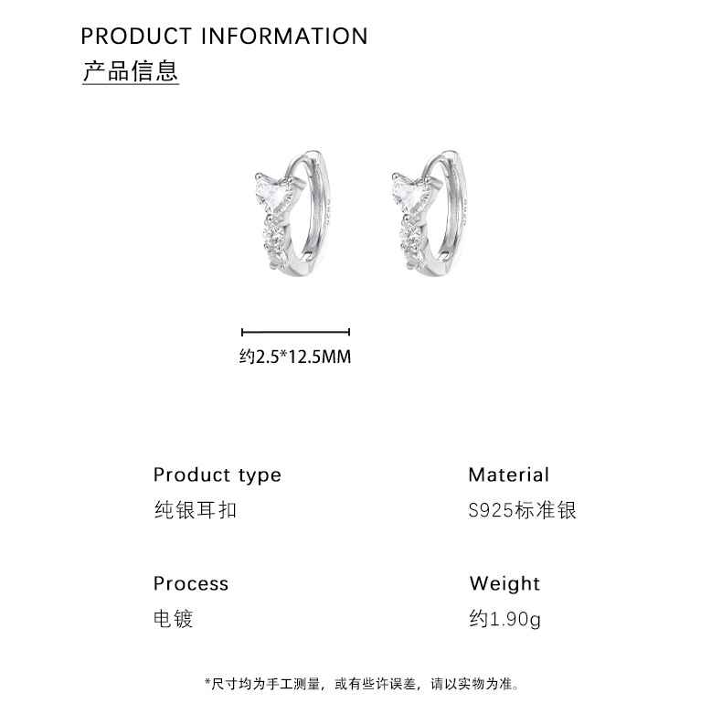 【爱意出动】S925纯银精致爱心镶锆石耳环【YXS-E5790】