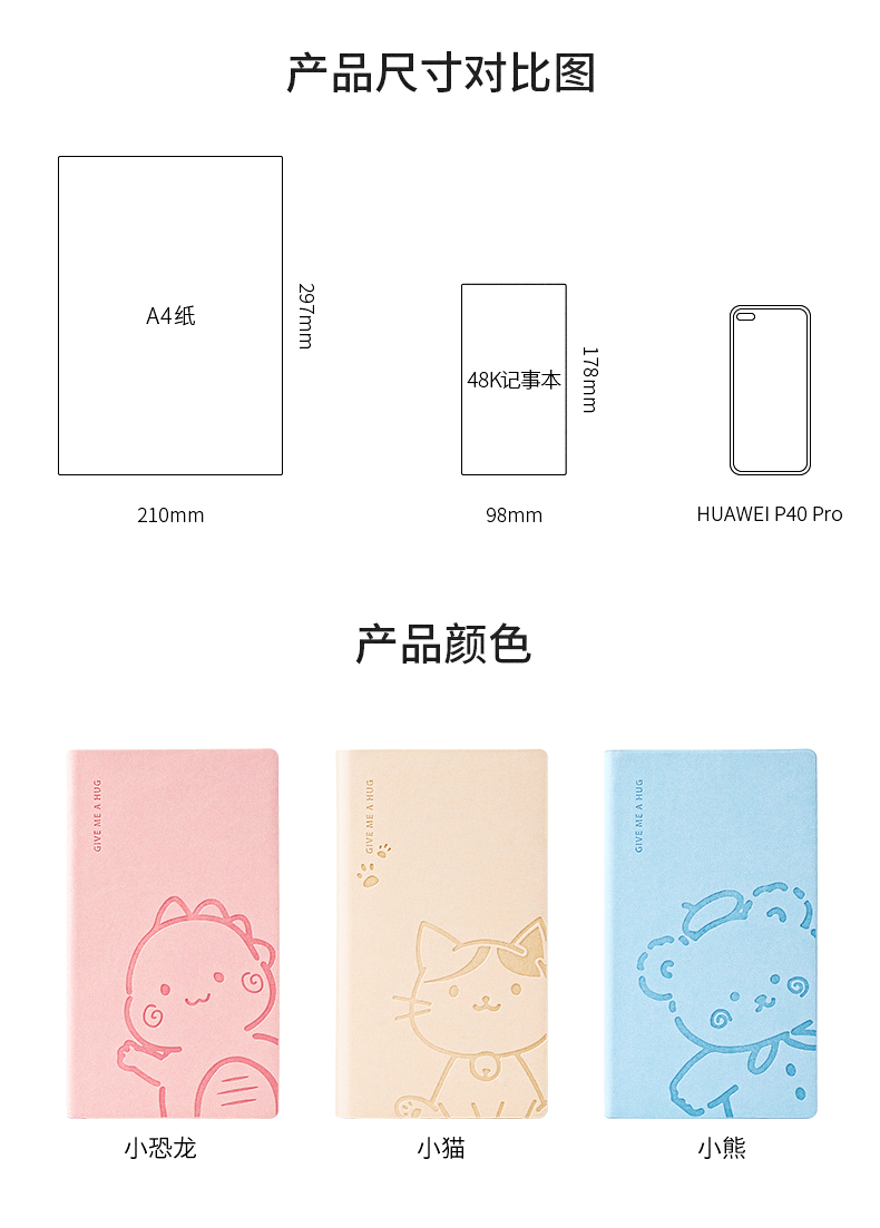 卡杰48K可爱小动物记事本CA6J4825可爱少女心小本子便携随身小号笔记本迷你手账本笔记本女生