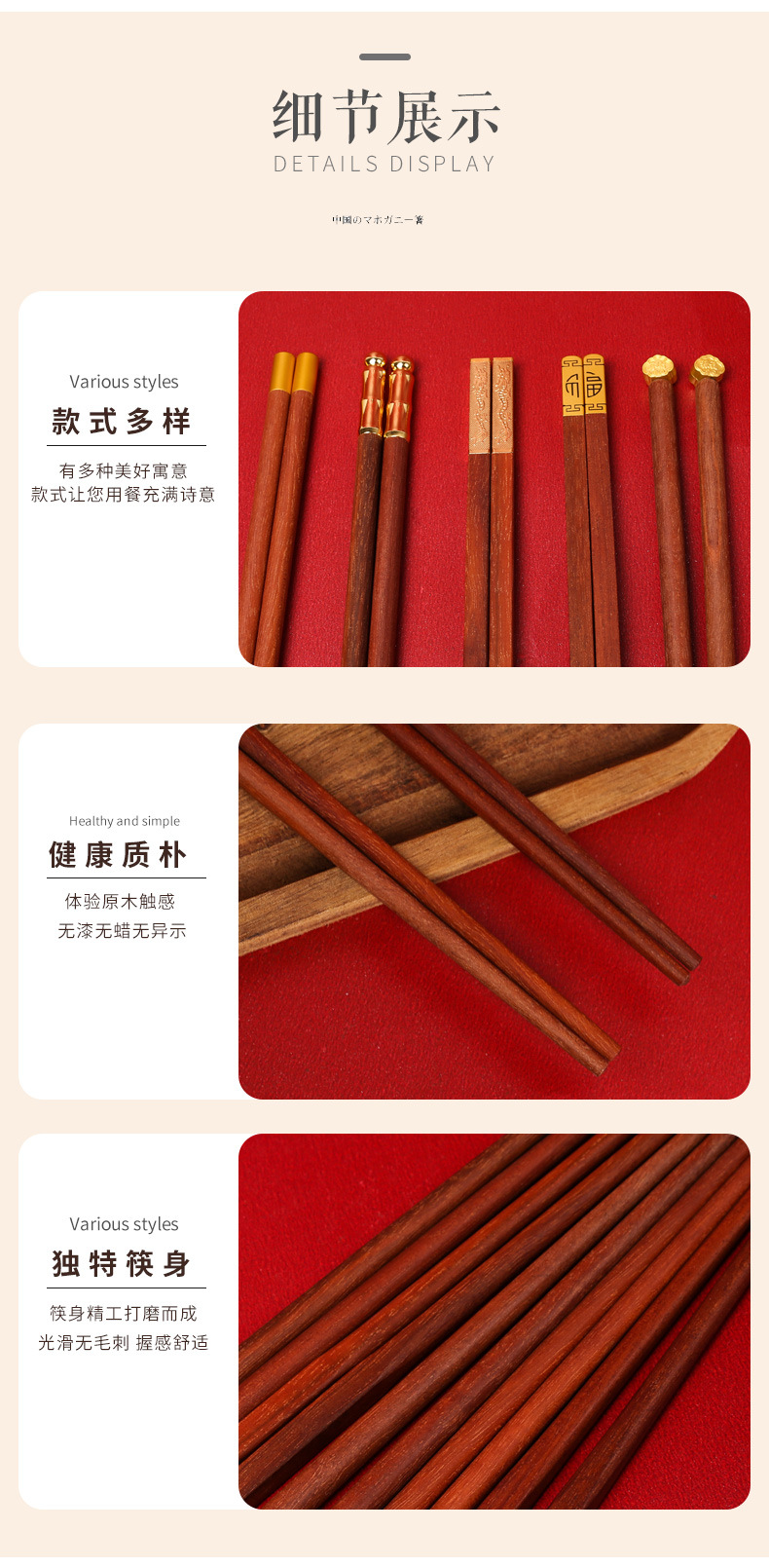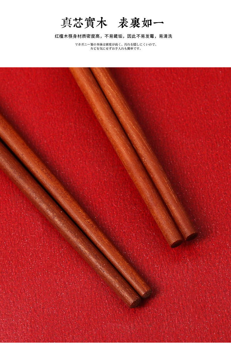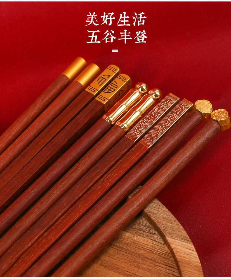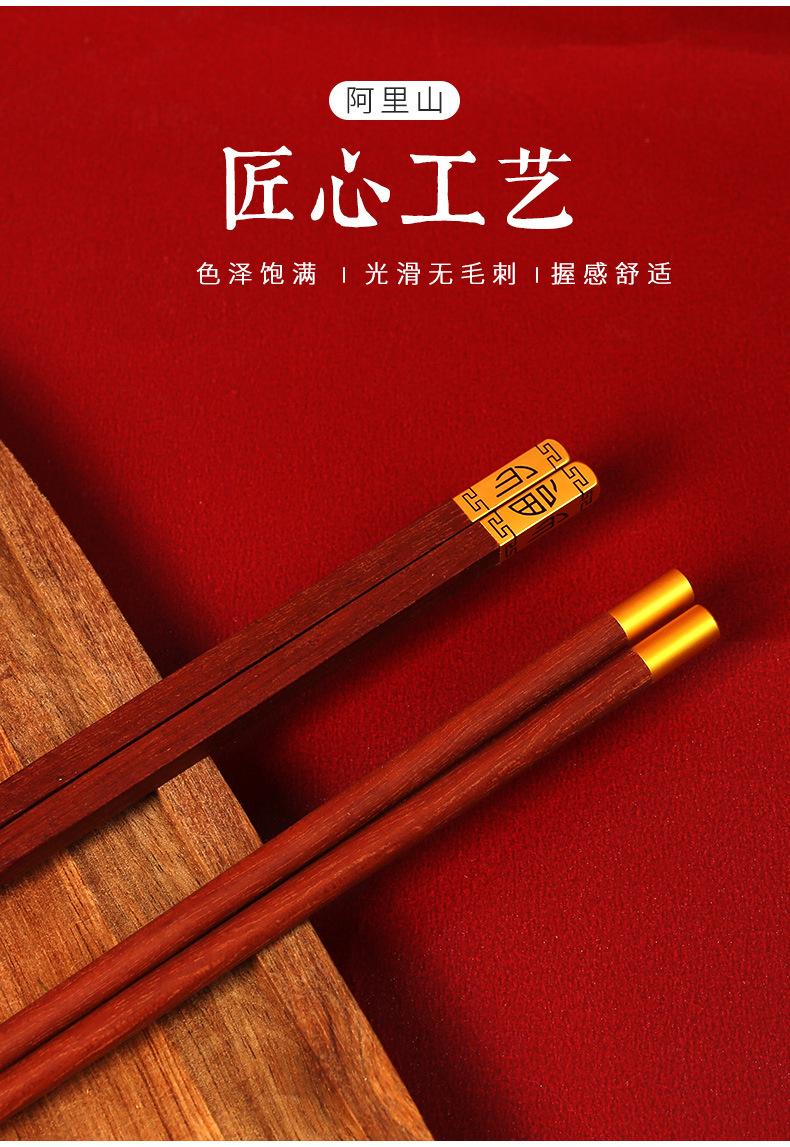 实木筷子礼盒装【健康分餐!一人一筷】家用鸡翅木红檀木,国潮筷子礼品套装,一人一筷5双礼盒装,色泽饱满,光滑无毛刺1握感舒适。