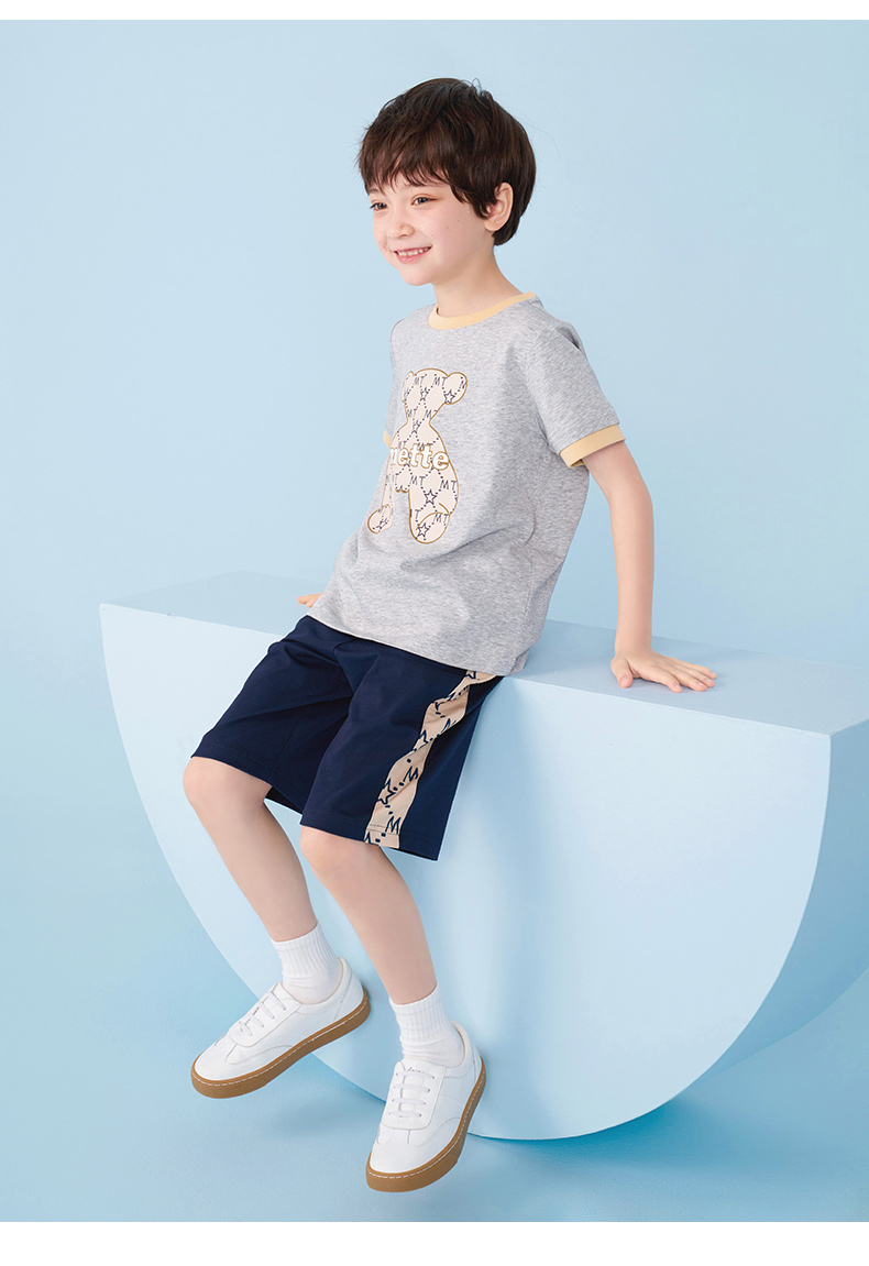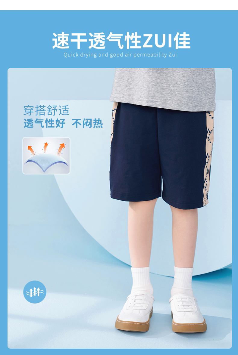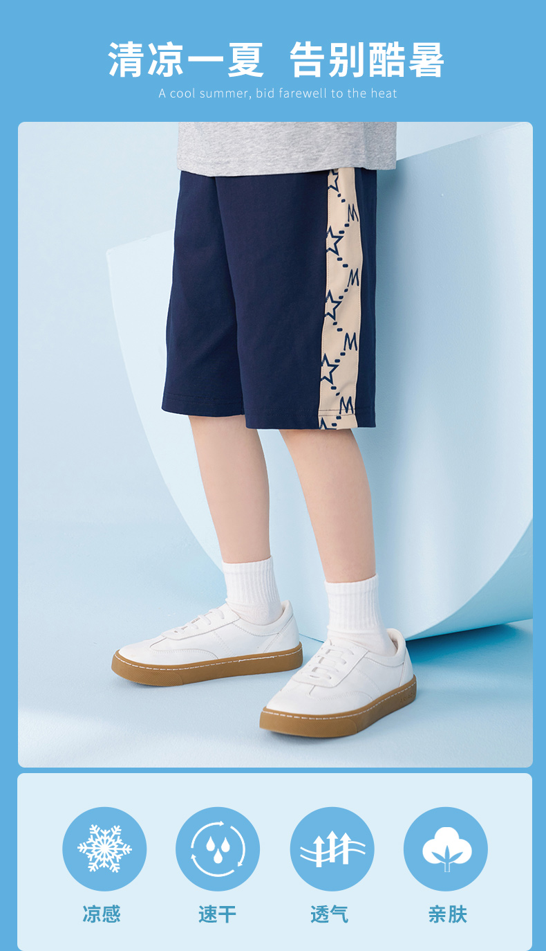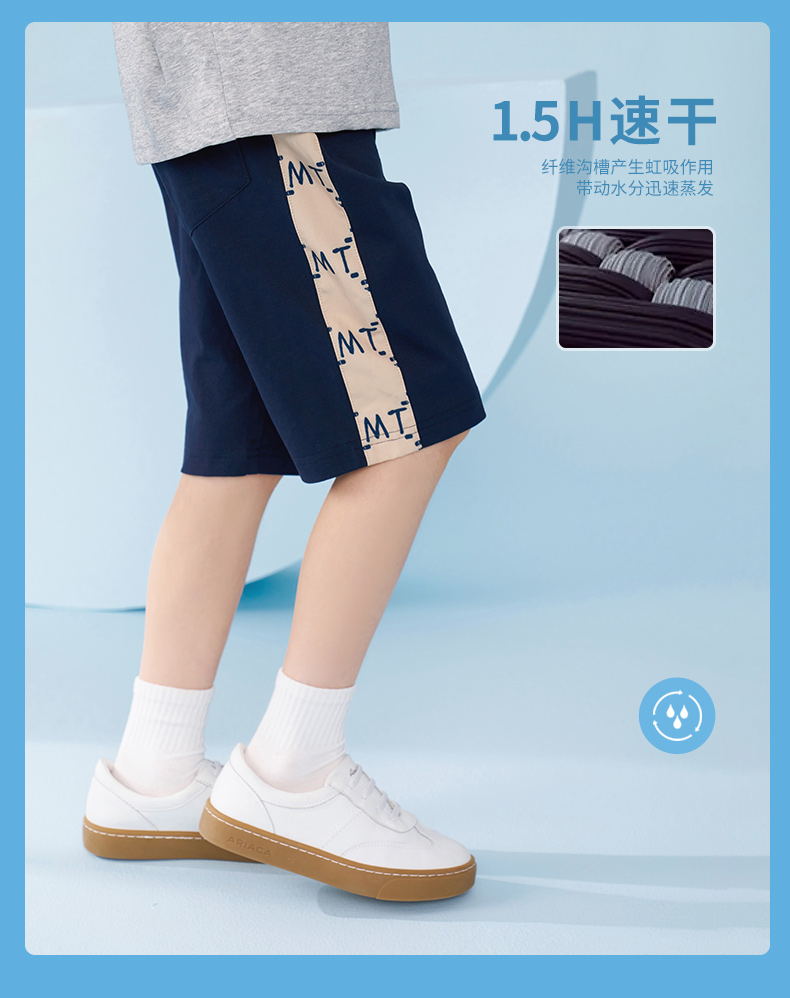 mettekids男童短裤夏季新款凉感透气薄款裤子儿童休闲运动五分裤