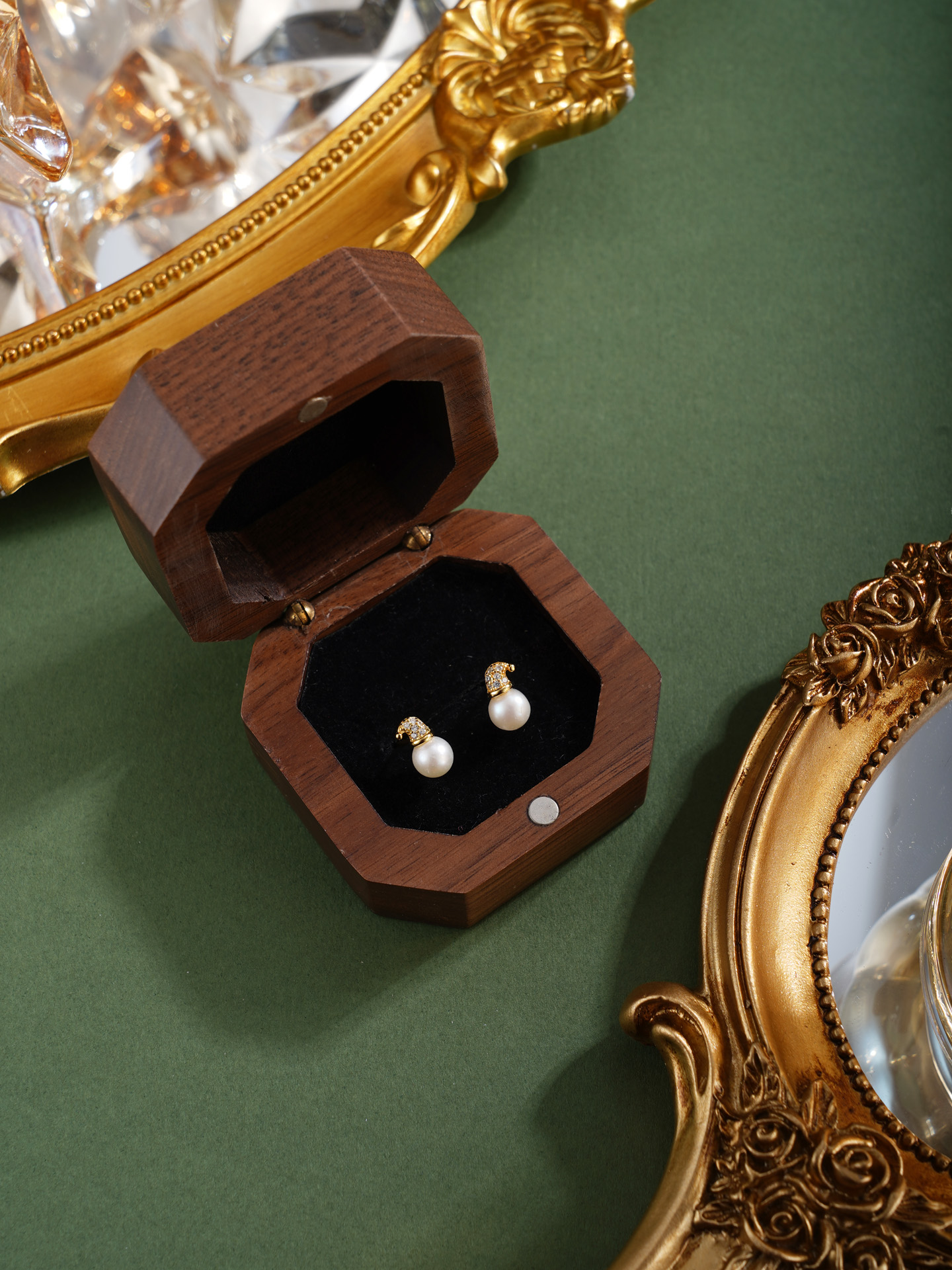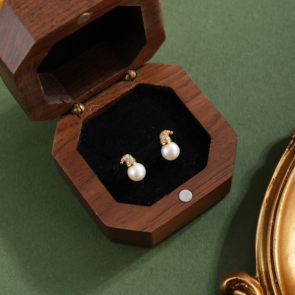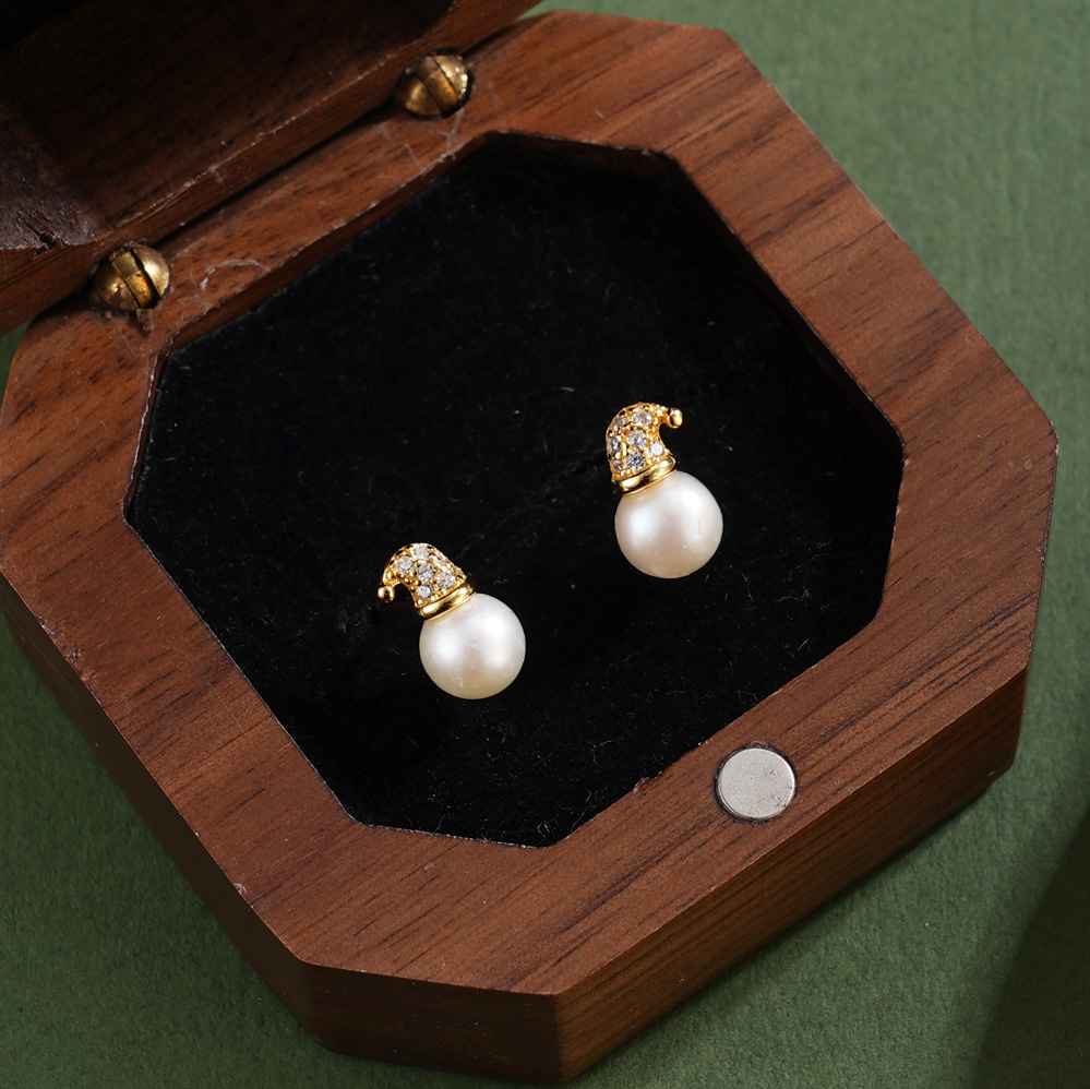子佩集【雪顶奇缘】银S925珍珠惜王妃耳钉【SGE0350011】镀金帽子2602