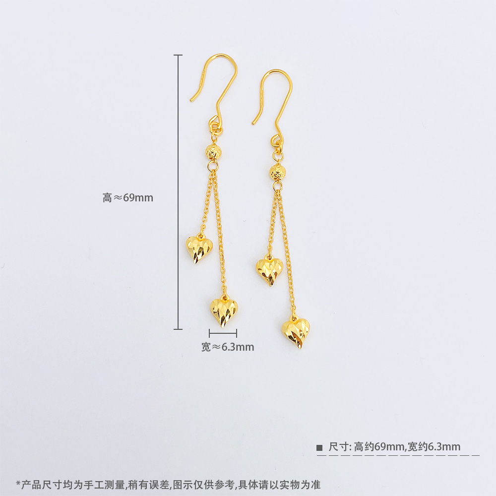 【限时克减150元元】足金999.99 五9黄金心形流苏耳钩耳吊(AFWJ040ES00065)(预售产品下单后不退款不退货不换货不补差价(预售产品下单后不退款不退货不换货不补差价