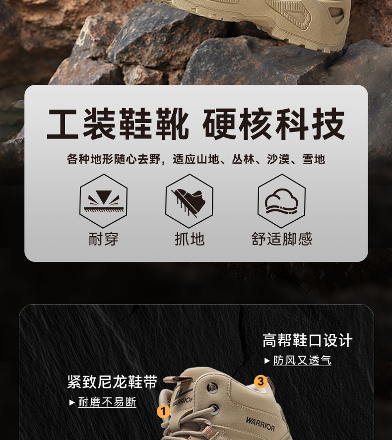 回力登山鞋男户外防泼水中高帮马丁作战靴工装战术全地形徒步鞋子