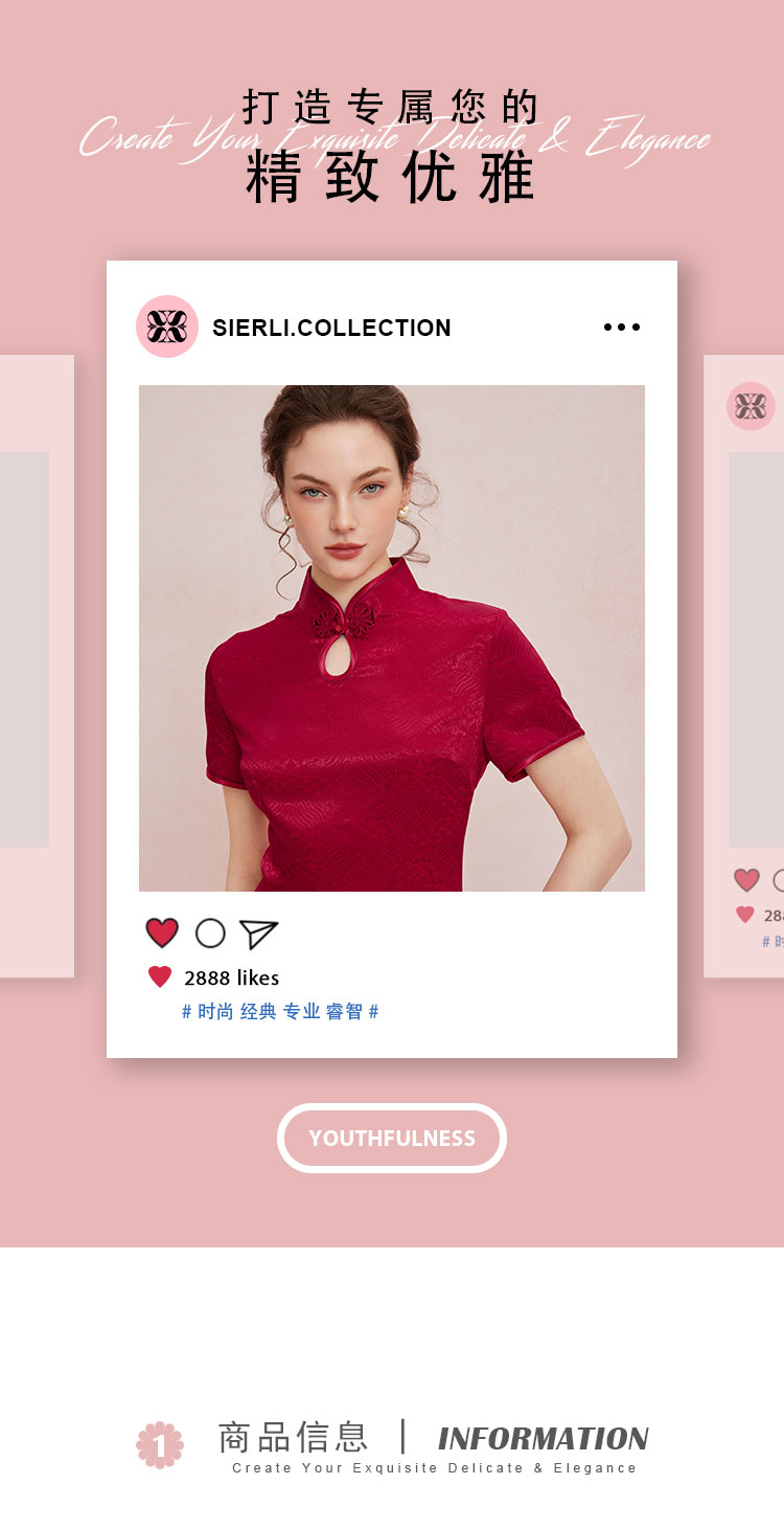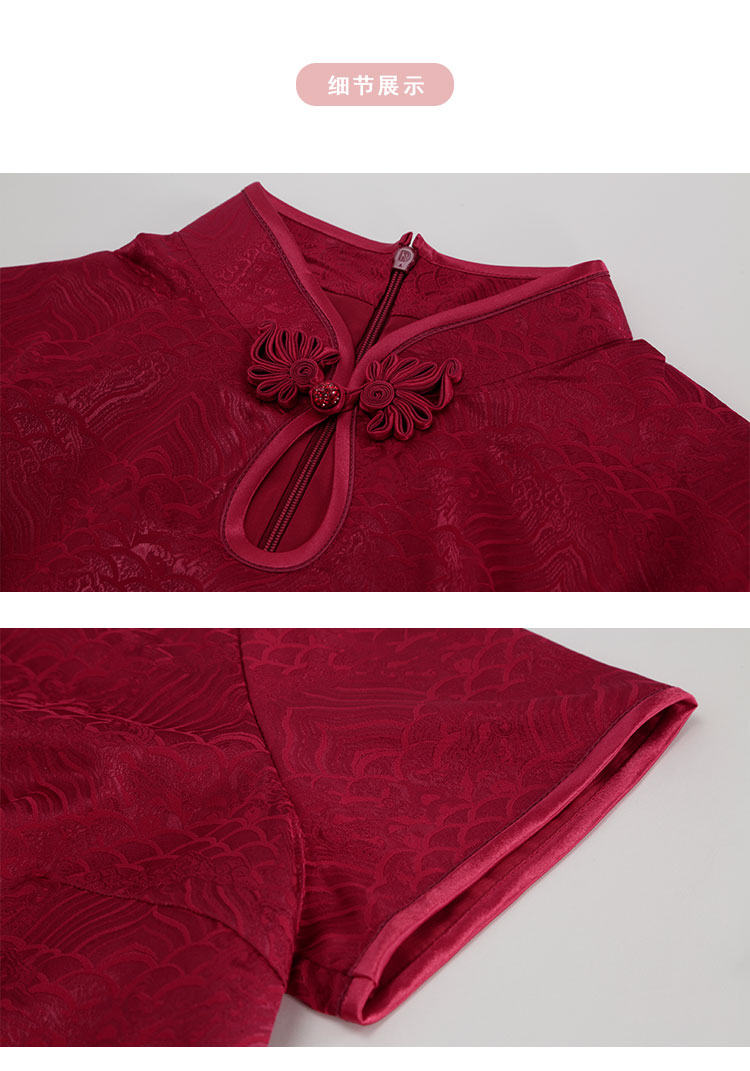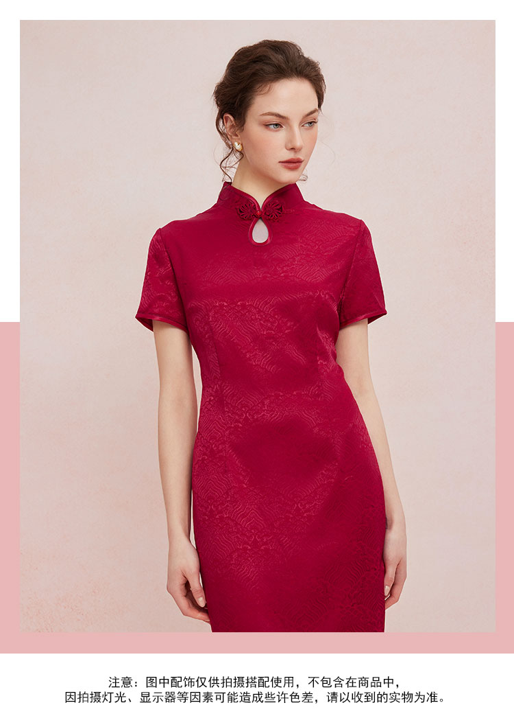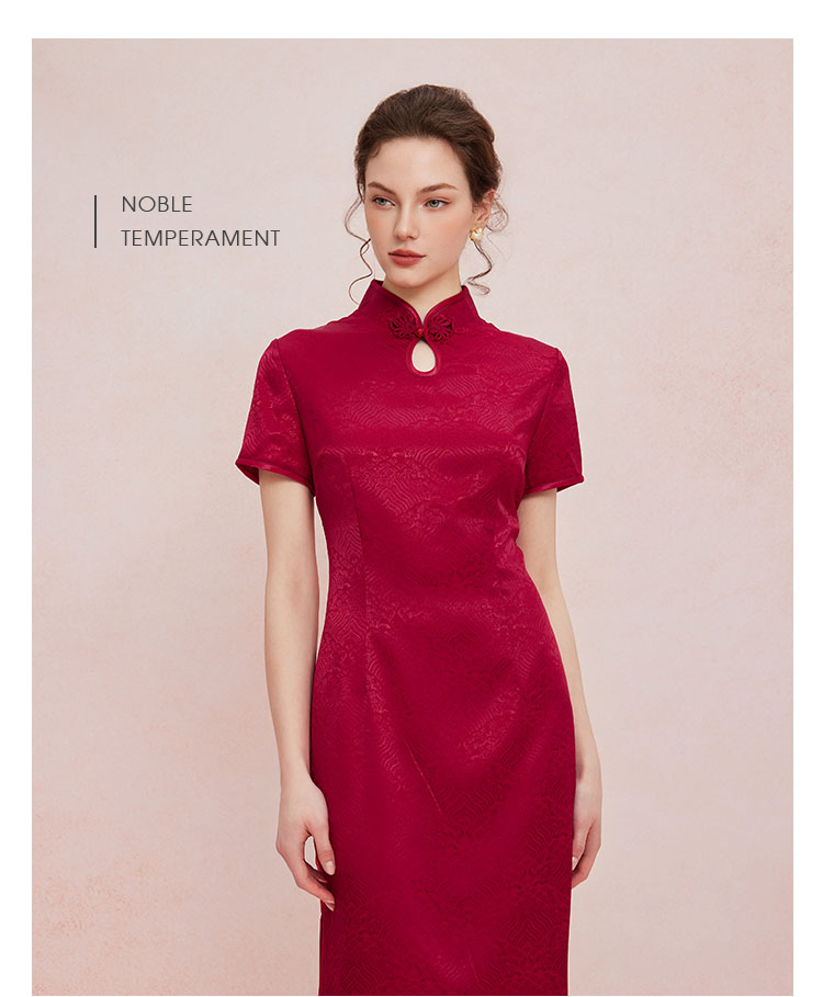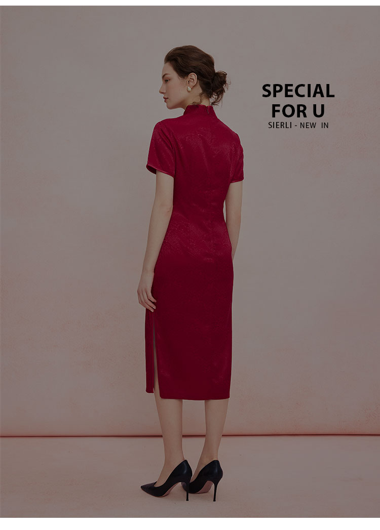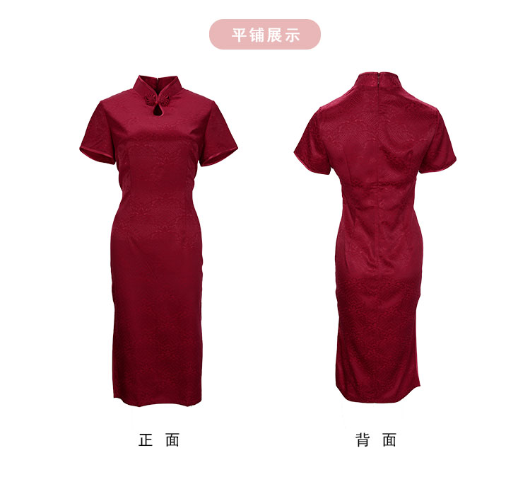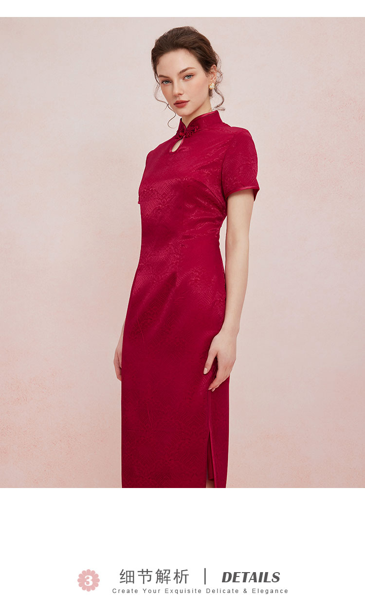 QF817斯尔丽2025新款宴会优雅复古修身复古鳞纹中长款旗开得胜旗袍