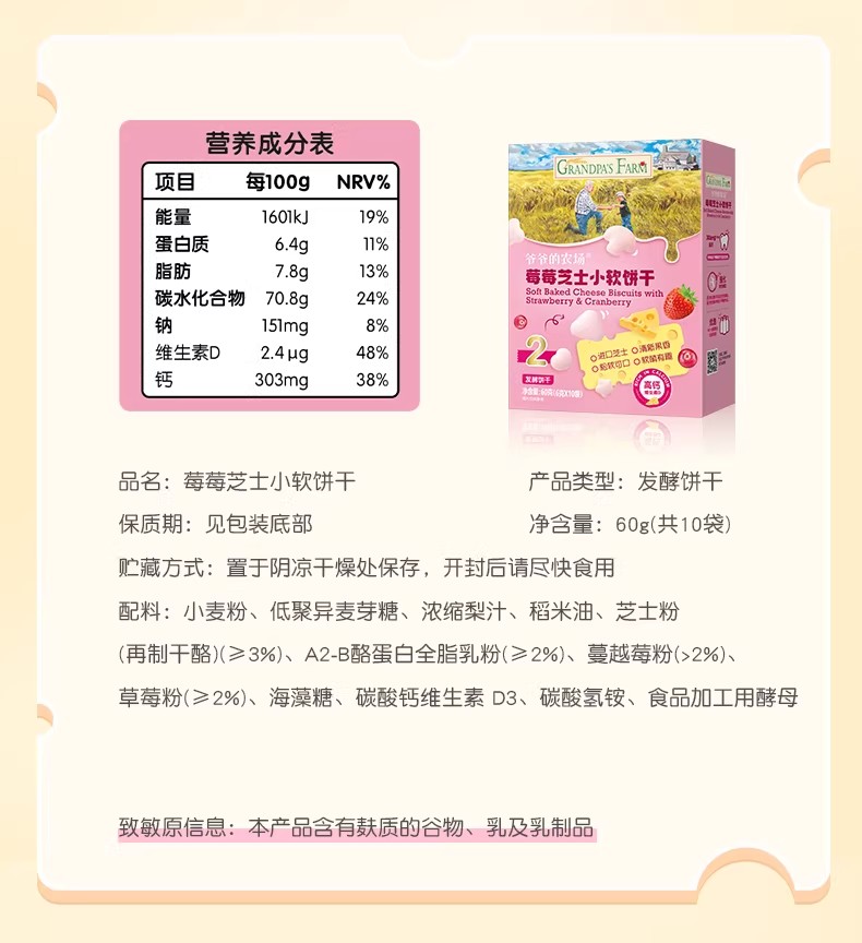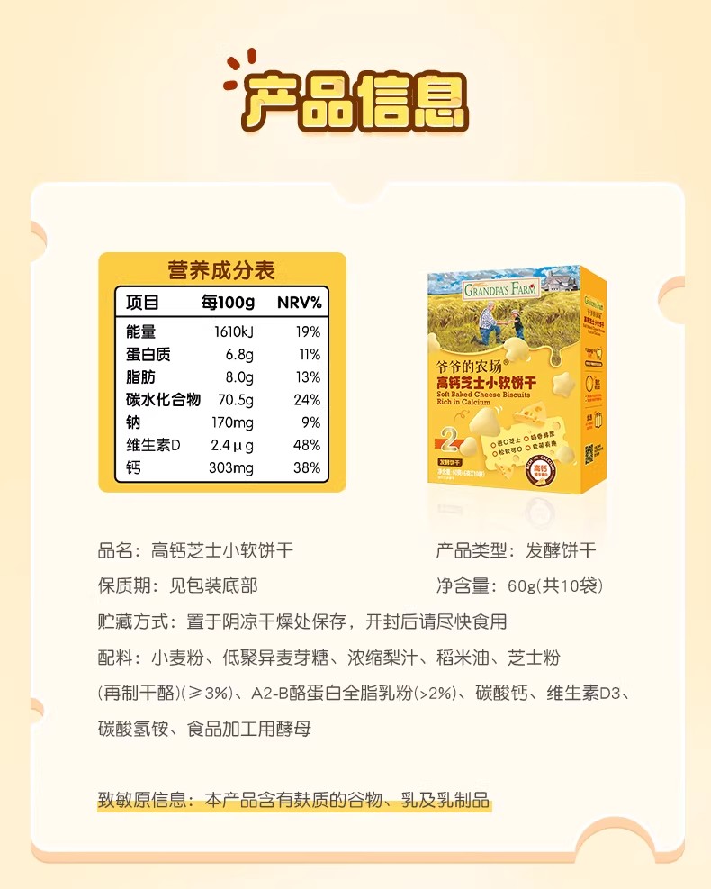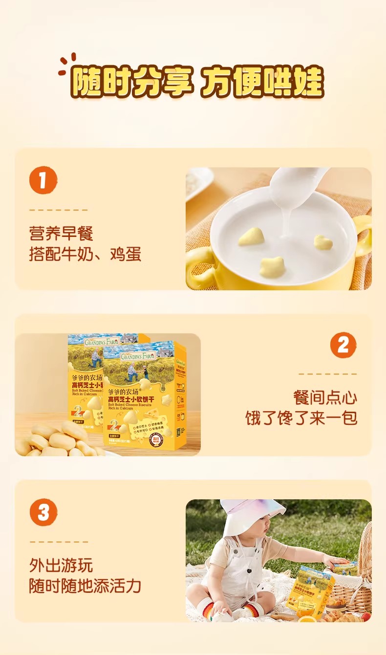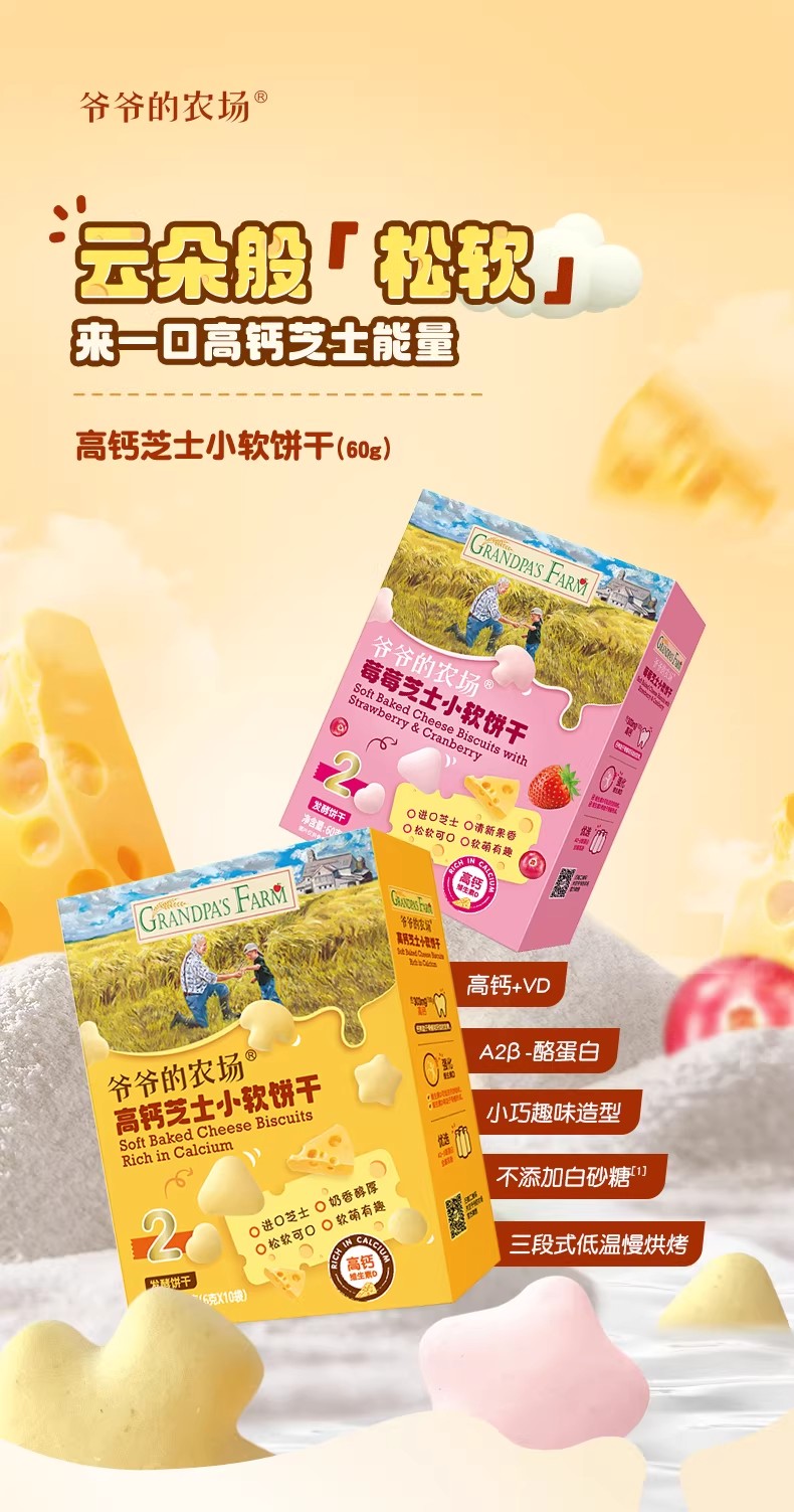 爷爷的农场 芝士小软饼干软饼 奶酪小馒头宝宝零食磨牙饼干1岁+
